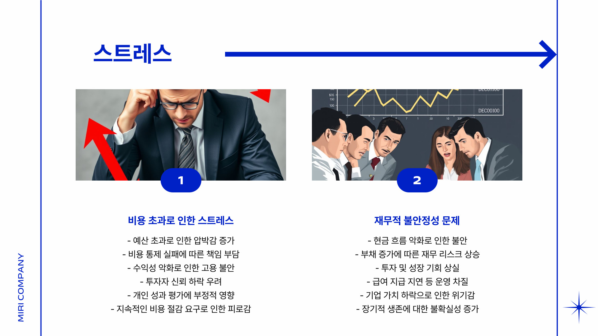 기업에서 발생하는 스트레스는 여러 가지 요인으로 인해 발생합니다. 원가를 잘 관리하지 못하면 비용 초과나 재무적 불안정성이 초래되어, 이는 곧 직원들의 스트레스로 이어질 수 있습니다. 이럴 때 원가관리회계를 적극 활용하면 효과적인 해결책이 됩니다. 원가관리를 통해 예산을 정확히 세우고, 예상치 못한 비용을 사전에 차단할 수 있습니다. 또한, 정기적인 원가 분석을 통해 비효율적인 지출을 줄이고, 필요한 자원을 최적화하여 스트레스를 줄일 수 있습니다.