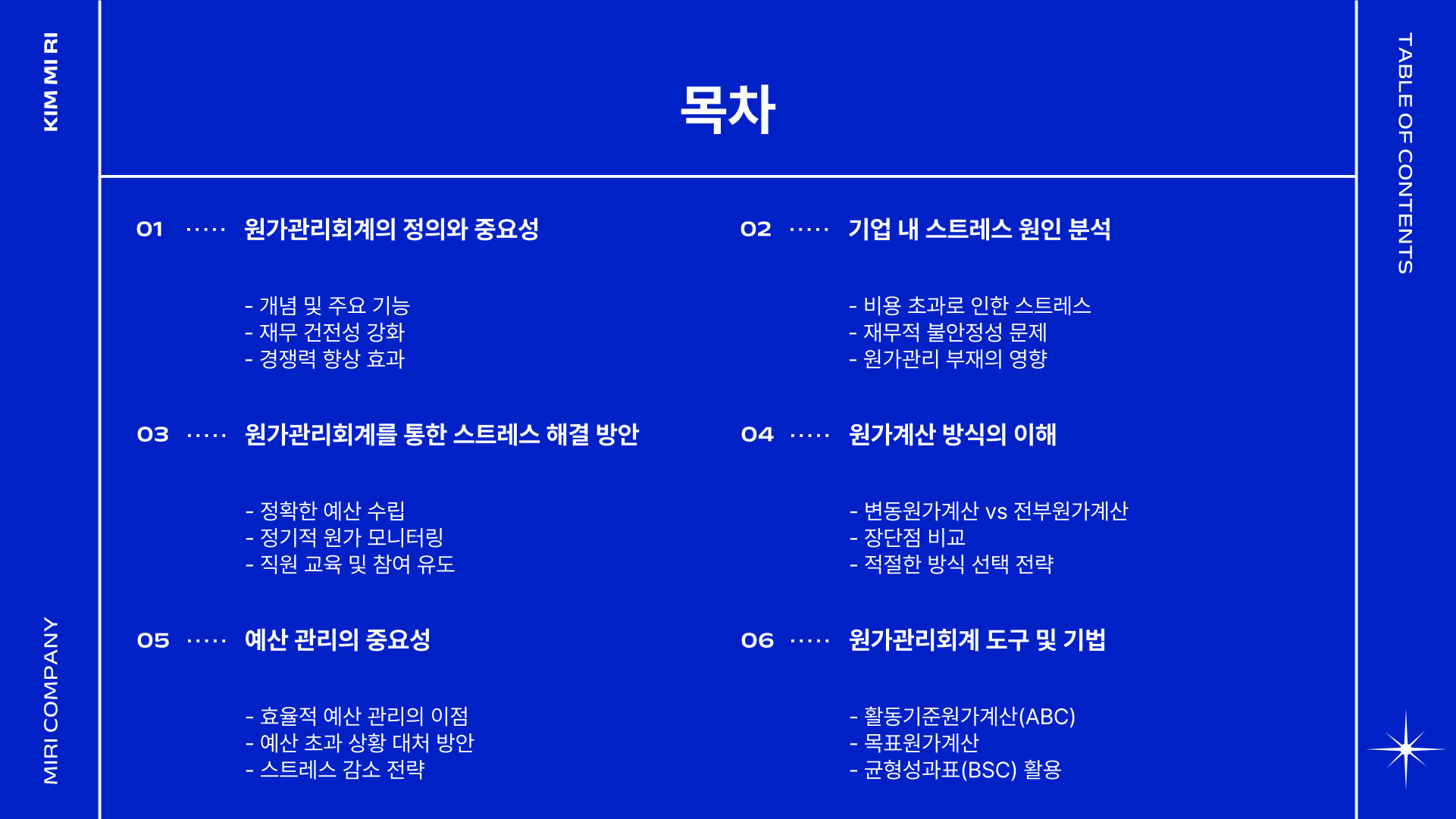 - 원가관리회계는 기업의 원가를 체계적으로 관리합니다.