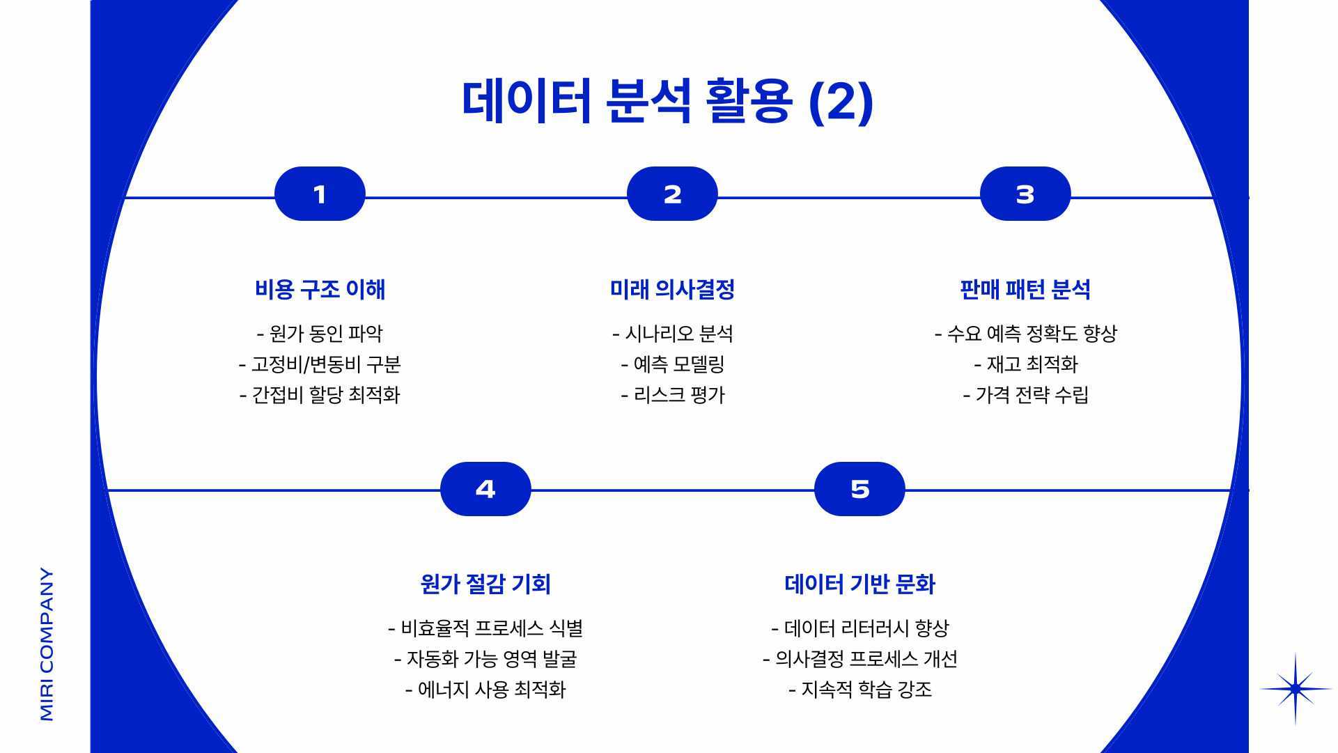 마지막으로, 원가관리회계에서 데이터 분석을 적극 활용하는 것이 중요합니다. 다양한 분석 툴을 통해 수집된 데이터를 분석하고, 이를 통해 인사이트를 도출할 수 있습니다. 데이터 분석은 비용 구조를 이해하고, 미래의 의사결정에 큰 도움이 됩니다. 예를 들어, 특정 제품의 판매 패턴을 분석하여 원가를 조정하는 전략을 세울 수 있습니다.