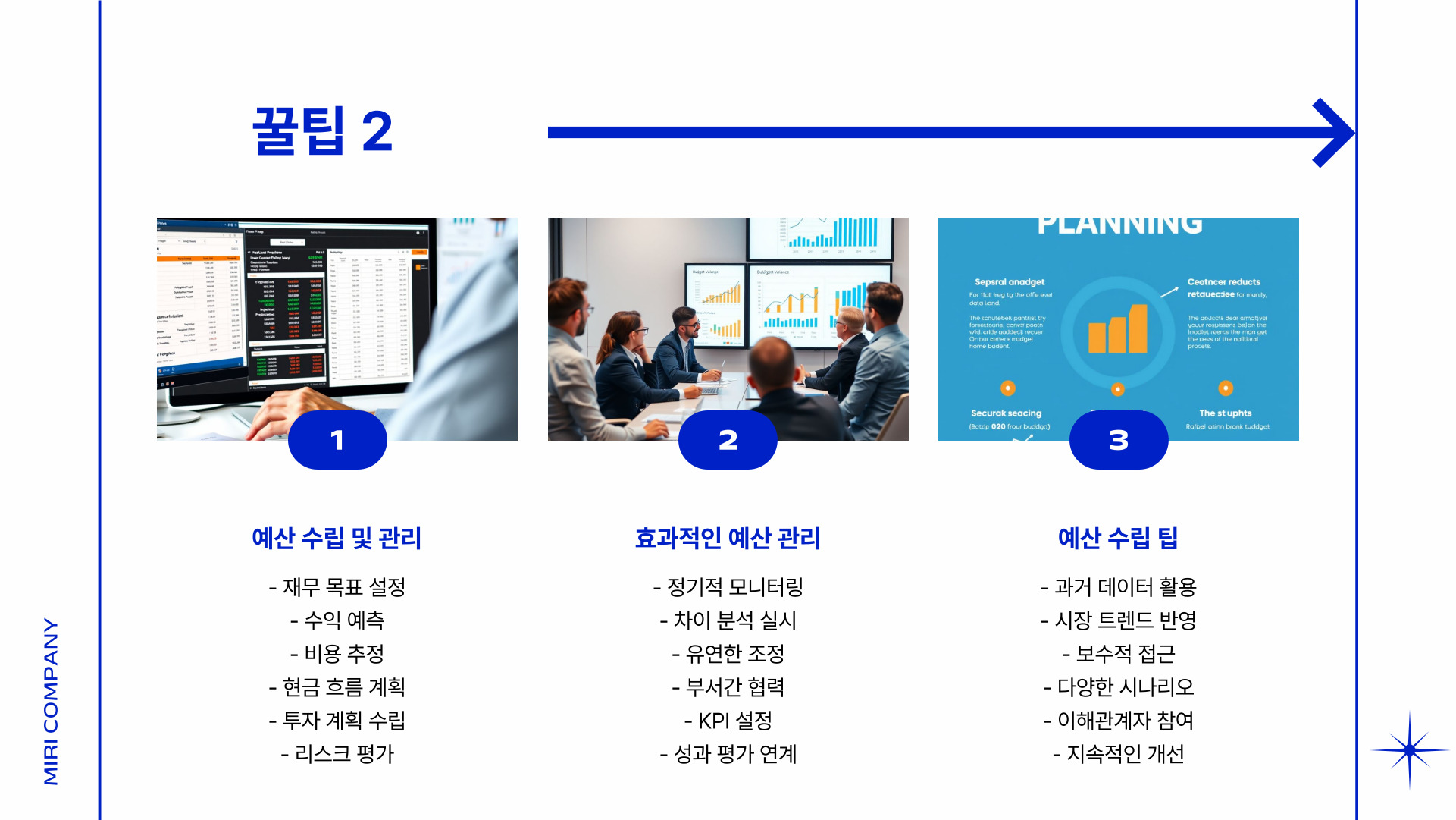 • 과거 데이터를 분석하여 현실적인 예산을 설정하세요.