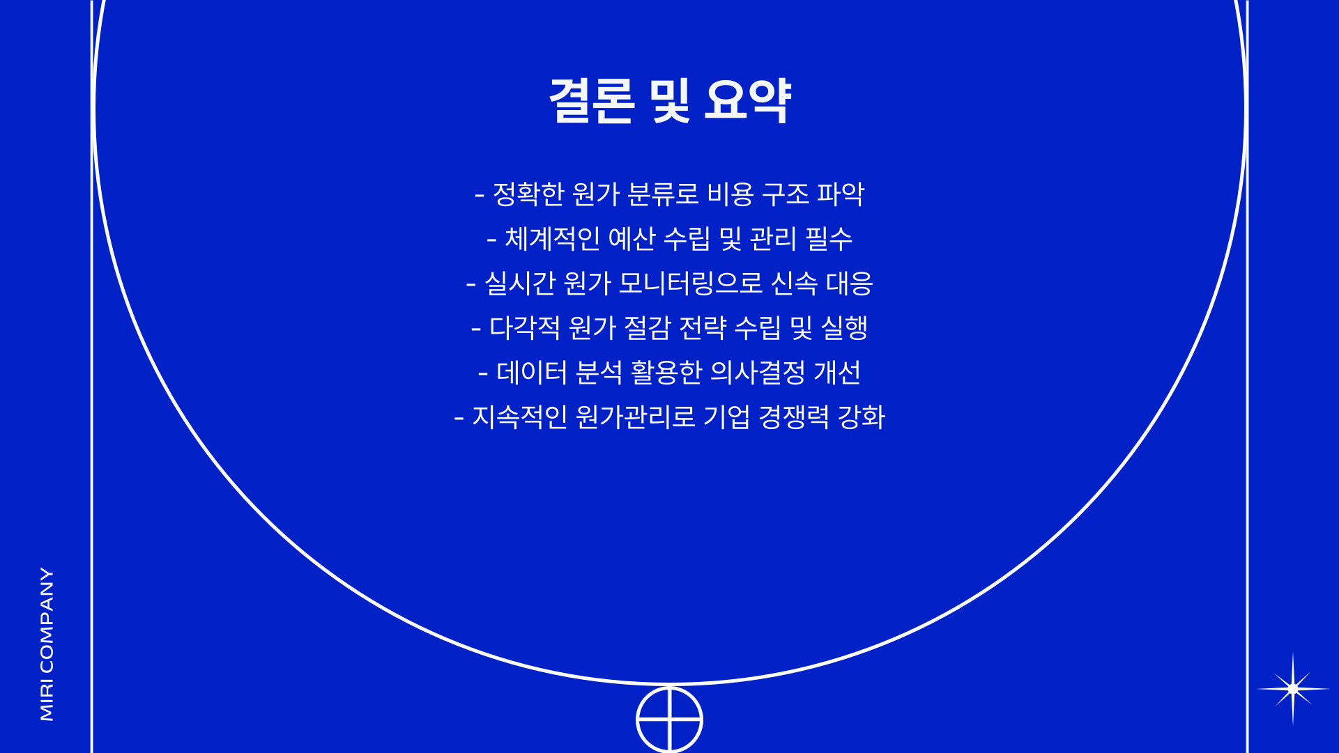 이와 같이 모든 부서가 원가 절감을 위한 목표를 공유하고, 이를 통해 전사적으로 원가 절감 문화를 정착시키는 것이 필요합니다. 지속적인 리뷰와 피드백 과정을 통해 전략을 조정하고 진전을 체크해야 합니다.
