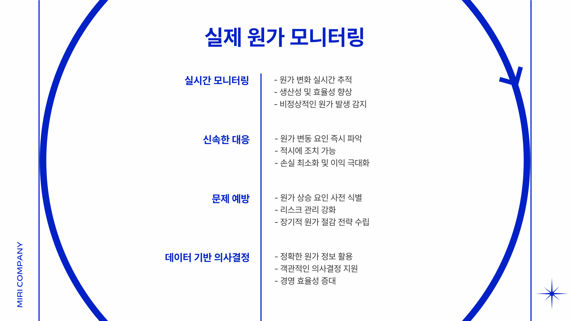 기업의 실시간 원가 상황을 모니터링하는 것은 매우 중요합니다. 매출과 비용의 변화를 빠르게 파악하여 필요한 조치를 취할 수 있습니다. 예를 들어, 특정 제품의 원가가 예상보다 높아지는 경우, 즉시 원인을 분석하고 대처해야 합니다. 실제 원가 모니터링을 통해 문제를 사전에 예방할 수 있습니다.