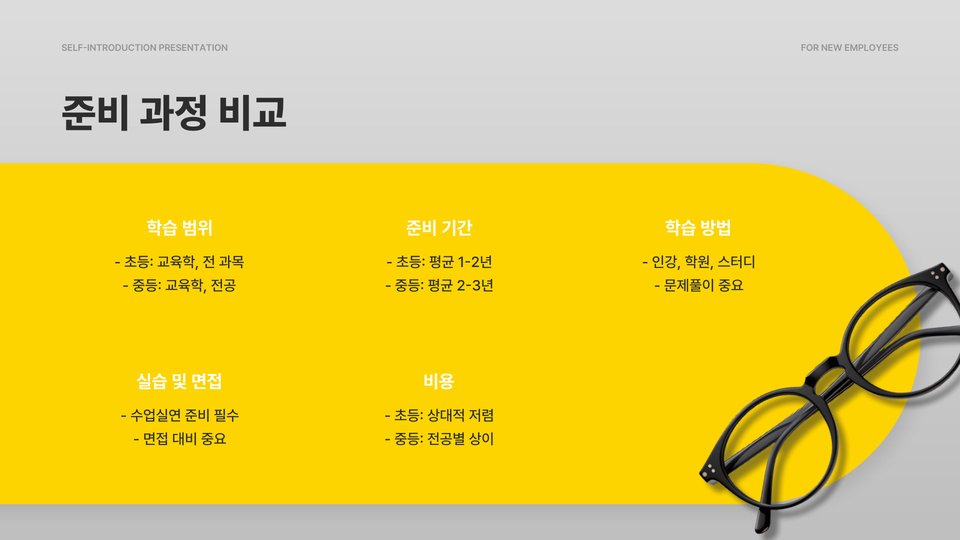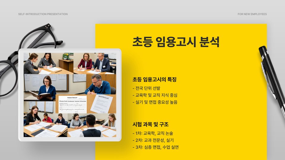 - 초등 임용고사는 상대적으로 넓은 범위의 과목 이해가 필요함.