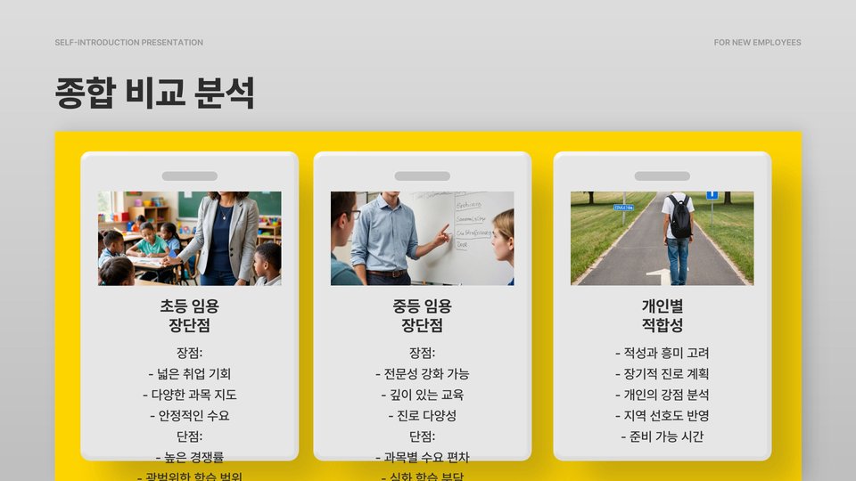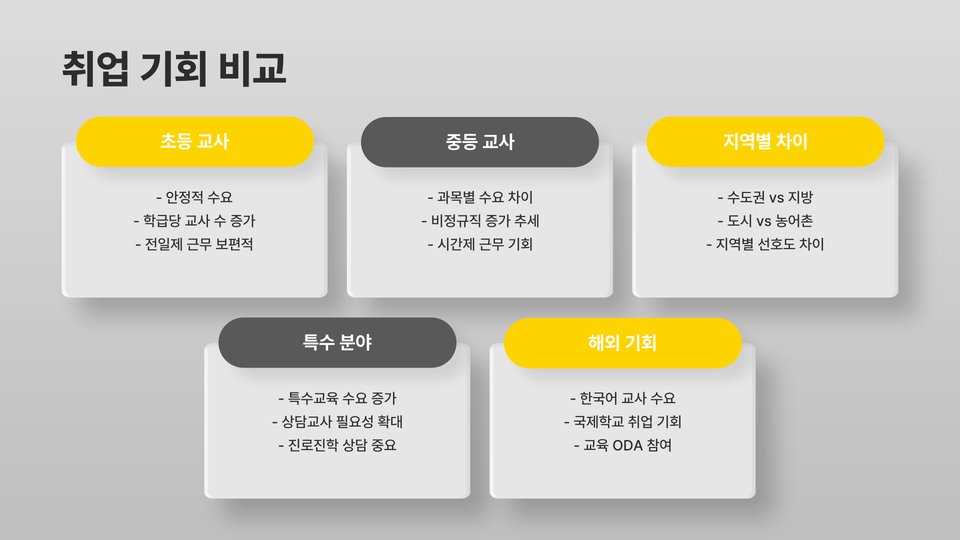 초등교사와 중등교사 각각의 임용고시는 다른 특성을 지니고 있으며, 그 성취도는 개인의 선호도와 역량에 크게 좌우됩니다. 초등학교의 경우, 더 많은 취업 기회와 안정적인 직업적 환경을 제공할 수 있도록 여건이 마련되어 있습니다. 반면, 중등교사는 한정된 인원과 전문성을 요구하므로, 특화된 분야에서 더욱 높은 성취를 원하는 이에게 좋은 선택이 될 수 있습니다.