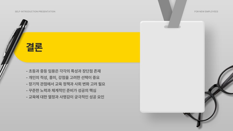 결론적으로, 초등과 중등 임용고시 발표는 그 자체로 많은 생각거리를 제공합니다. 어떤 경우든, 준비와 응시에 대한 체계적인 접근이 성공적인 결과를 가져올 것입니다. 따라서, 각자의 꿈과 목표에 맞는 선택을 하는 것이 중요합니다.