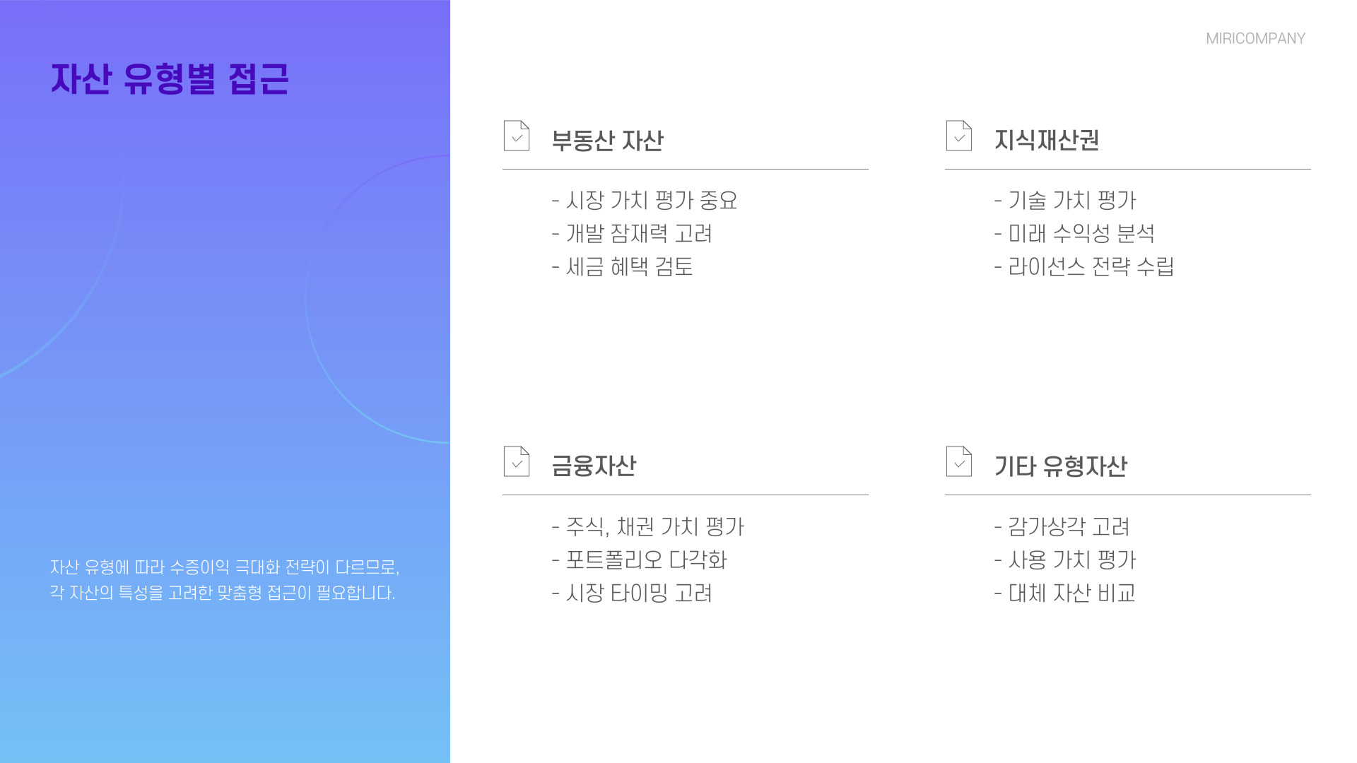 - 자산 다각화를 통해 리스크를 줄이고 안정성을 높인다.