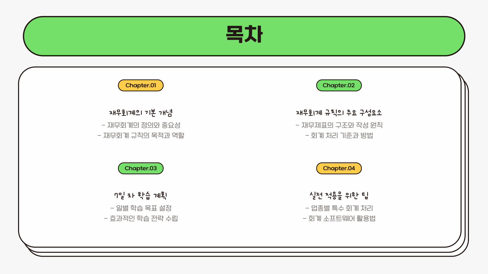 재무회계는 기업 운영의 중추적인 역할을 수행합니다. 올바른 회계 정보를 제공함으로써 의사결정을 지원하고, 법적 요구사항을 충족하며, 기업의 재무 건전성을 보여줍니다. 이번 포스트에서는 재무회계 규칙 단 7일간 비법에 대해 알아보고, 이를 통해 기업이 어떻게 재무회계 규칙을 더 잘 이해하고 적용할 수 있는지를 살펴보겠습니다. 해당 비법은 체계적이고 집중적인 학습을 통해 7일간의 시간을 활용하여 효과적으로 학습할 수 있습니다.
