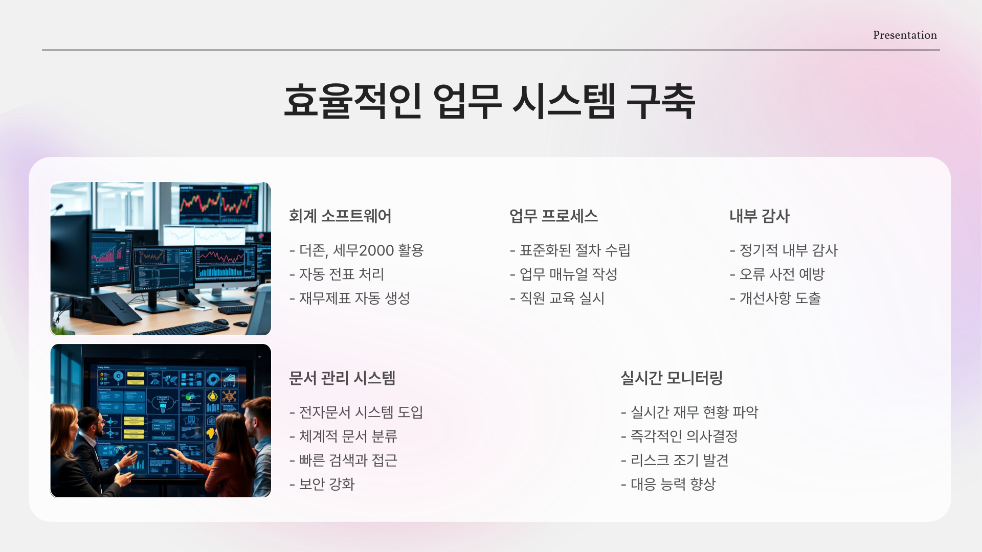Tags: 재무회계, 스트레스 해소, 회계 교육, 프로세스 자동화, 팀워크, 내부 감사, 문서 관리, 회계 규칙, K-IFRS, 회계 소프트웨어