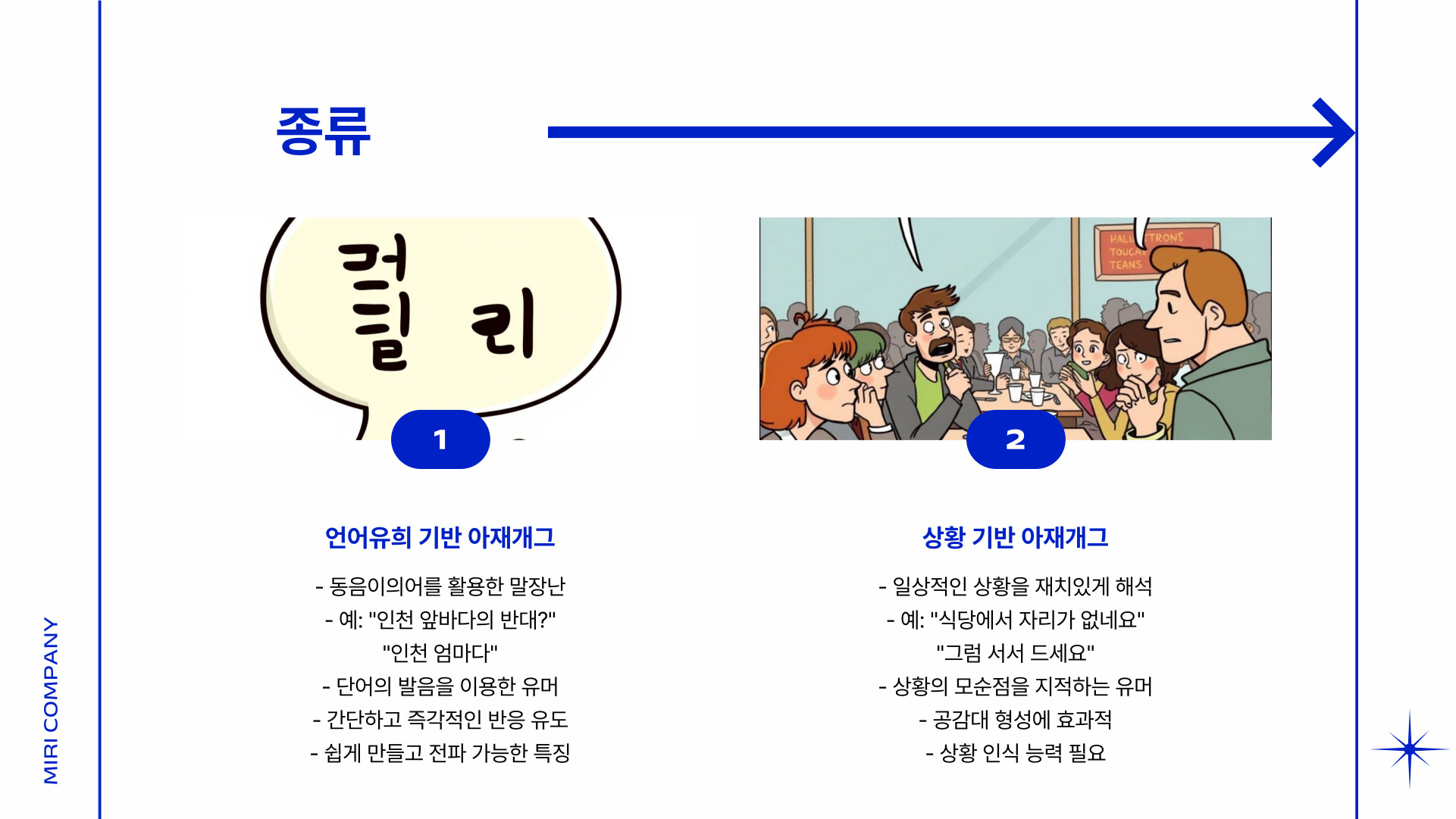 또한, 아재개그는 복잡한 상황 속에서도 순간의 웃음을 제공할 수 있습니다. 이처럼 웃음은 스트레스를 경감시키고 기분을 좋게 하는 데 효과적이라는 것이 많은 연구에서도 입증되었습니다. 그렇다면 자신의 아재개그를 친구들과 공유해보는 것도 좋은 방법입니다.
