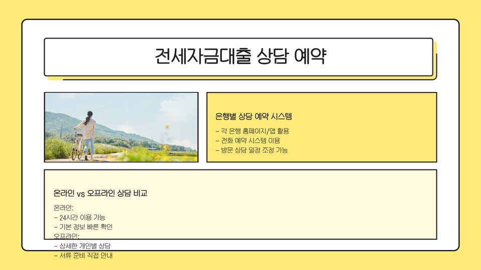 전세자금대출 상담을 예약하는 방법은 간단합니다. 대부분의 은행에서는 온라인으로 상담을 예약할 수 있는 시스템을 제공하고 있습니다. 방문 상담을 원할 경우, 해당 은행의 지점을 직접 방문해도 됩니다. 대부분의 은행에서는 상담 예약을 통해 대기 시간을 줄일 수 있습니다.