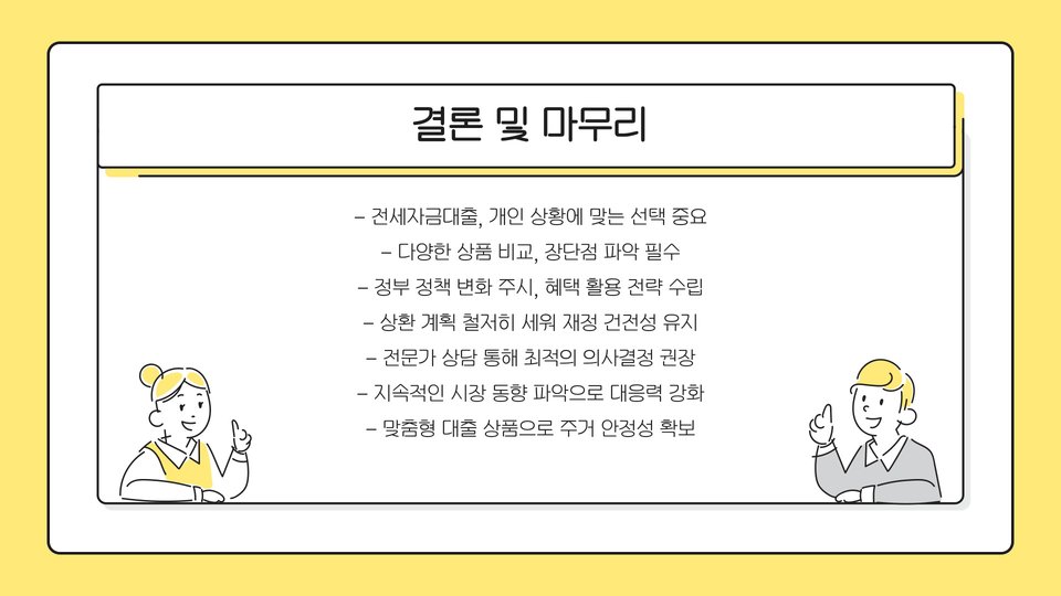 전세자금대출 상담은 주택을 임대하기 위한 중요한 단계입니다. 다양한 금융기관의 상담 서비스를 비교 분석하여 자신에게 맞는 최적의 선택을 하는 것이 중요합니다. 상담을 통해 필요한 정보를 충분히 얻고, 대출 조건을 잘 이해한 후에 결정하는 것이 바람직합니다. 궁극적으로, 충분한 정보와 상담을 통해 현명한 선택을 하시기 바랍니다.