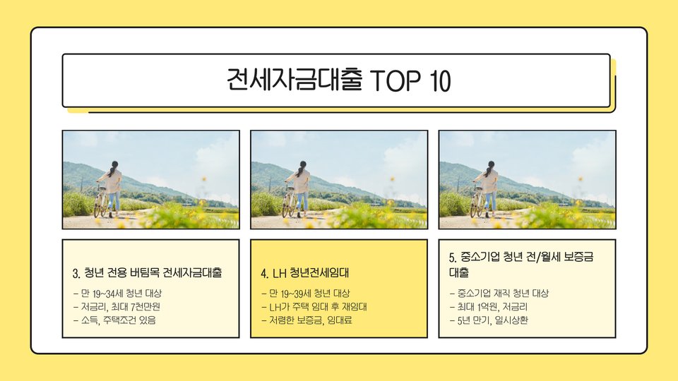 - 10. NH농협손해보험: 전세자금을 위한 대출 상품과 함께 보험 서비스도 제안합니다.