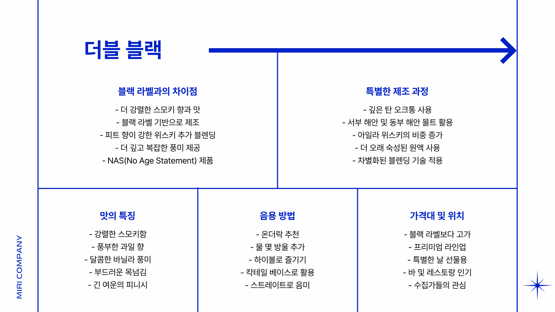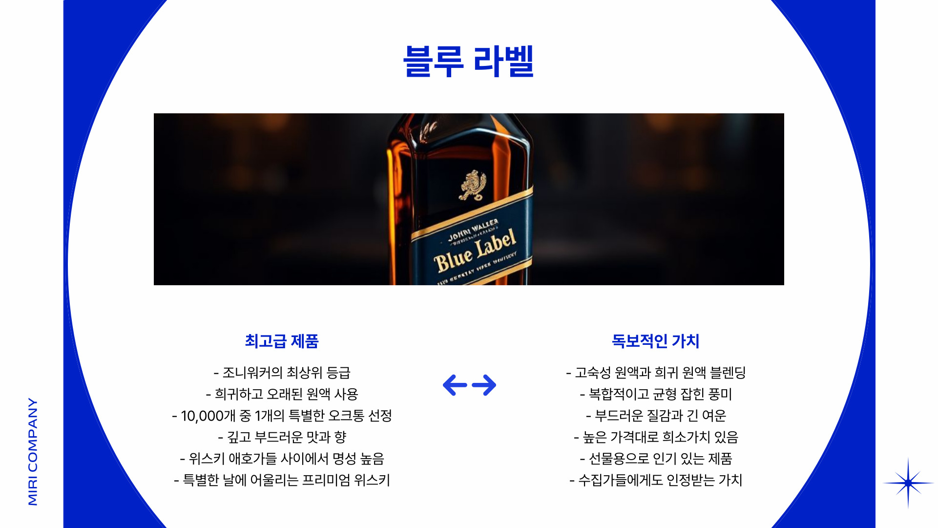 - 블루 라벨: 희귀한 원주, 복합적인 맛