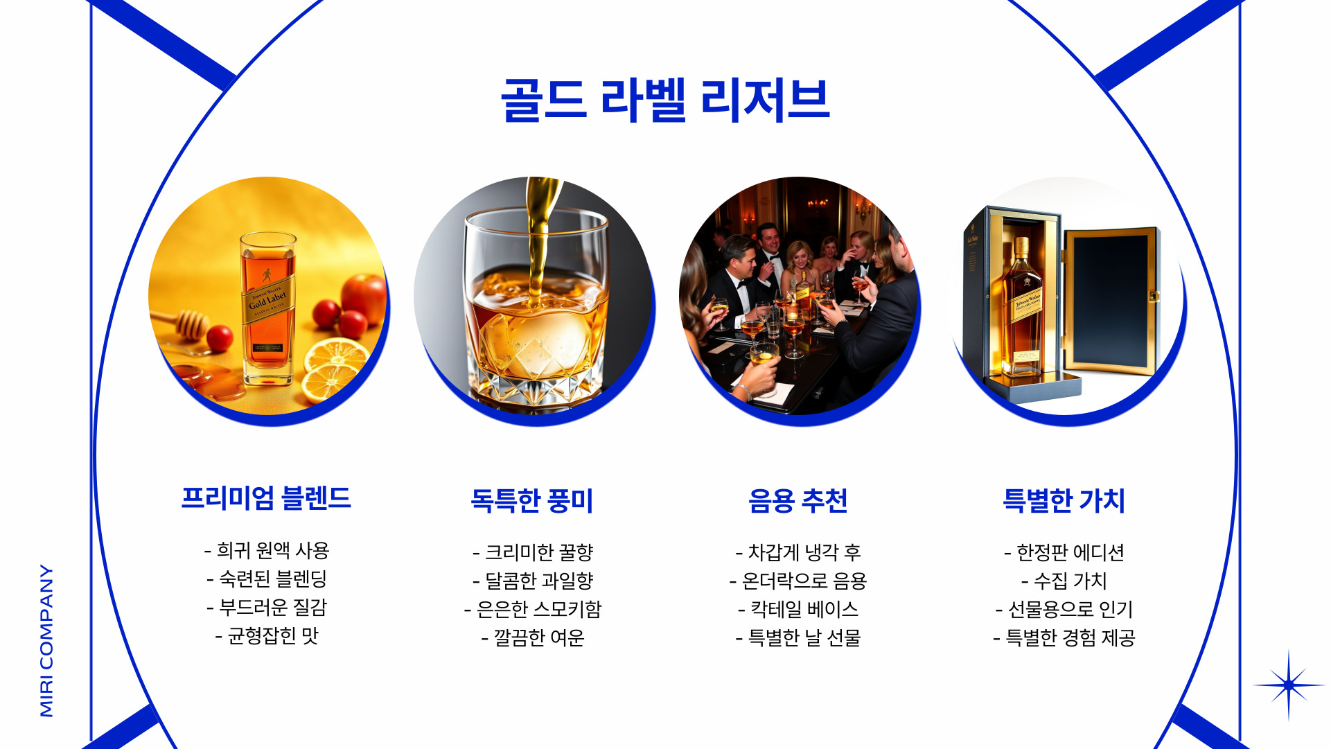 - 골드 라벨은 프리미엄 제품으로, 특별한 날에 어울리는 맛을 자랑합니다.