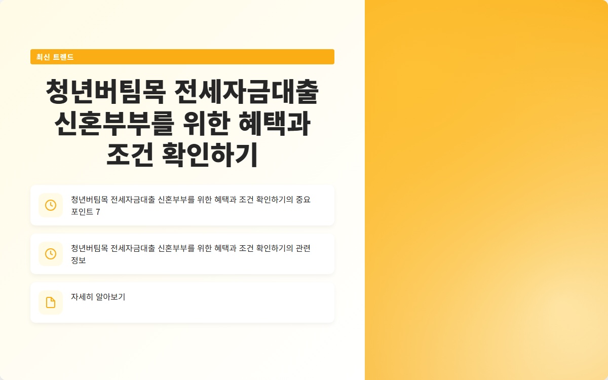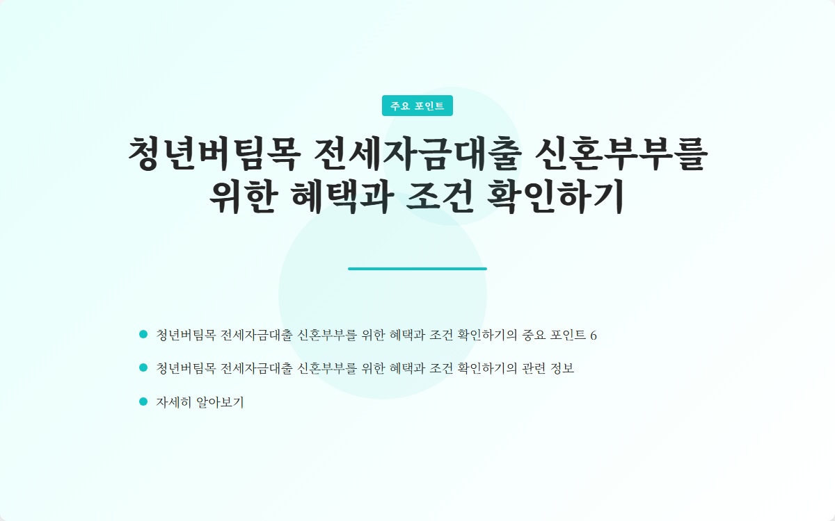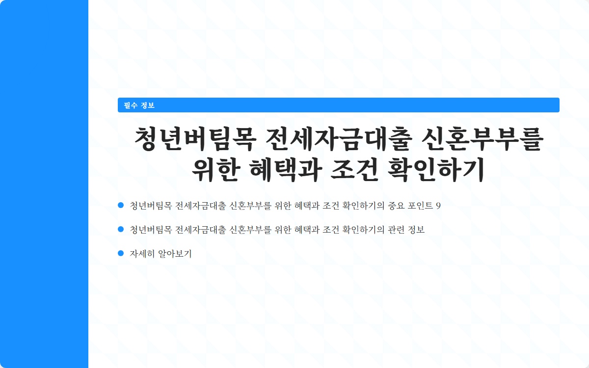 청년버팀목 전세자금대출 신혼부부를 위한 혜택과 조건 확인하기