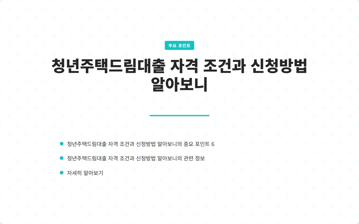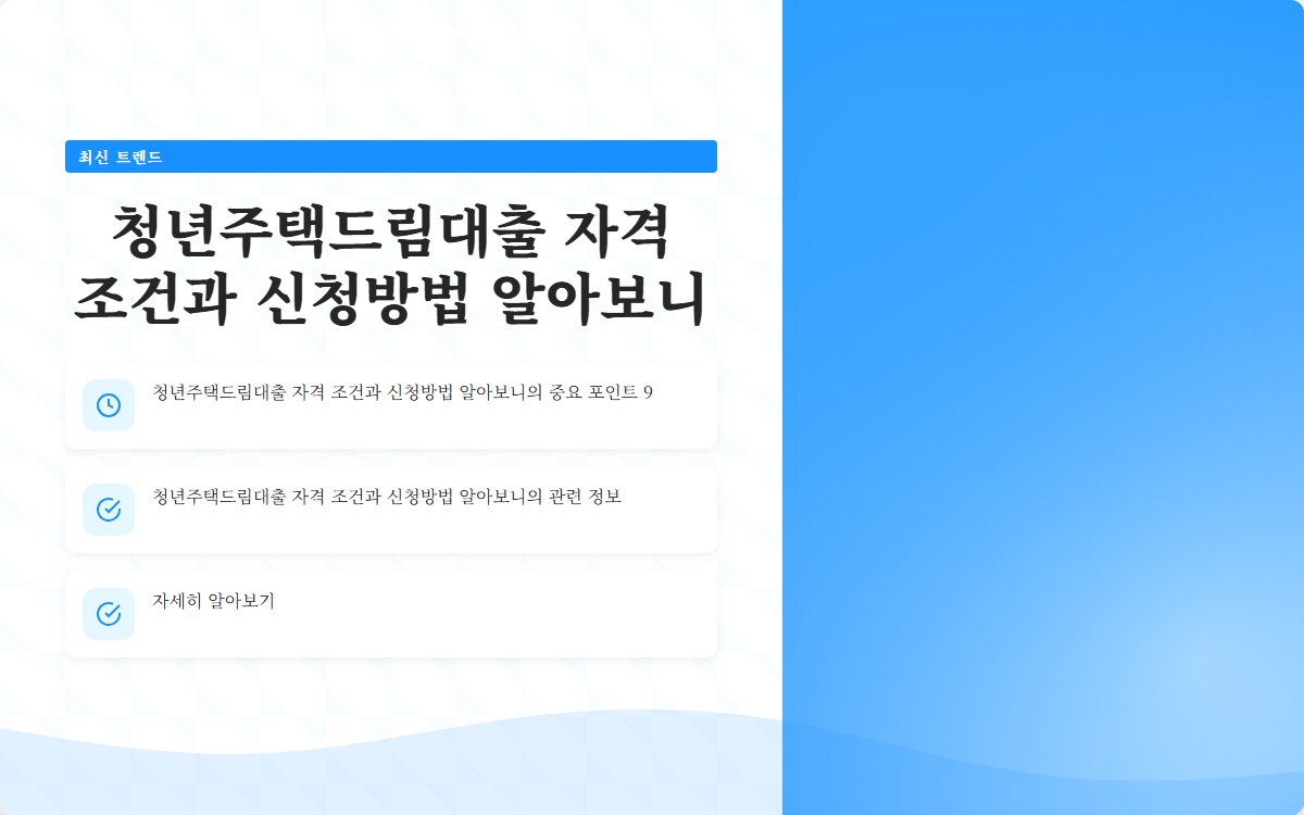 청년주택드림대출 완벽 가이드 모든 것을 알아보고 바로 실행하기 바로가기