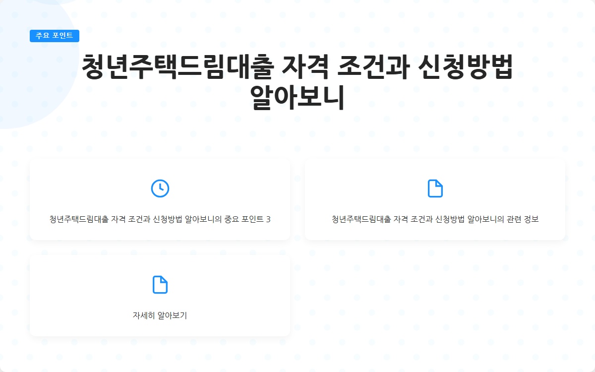 청년주택드림대출 완벽 가이드 모든 것을 알아보고 바로 실행하기 바로가기