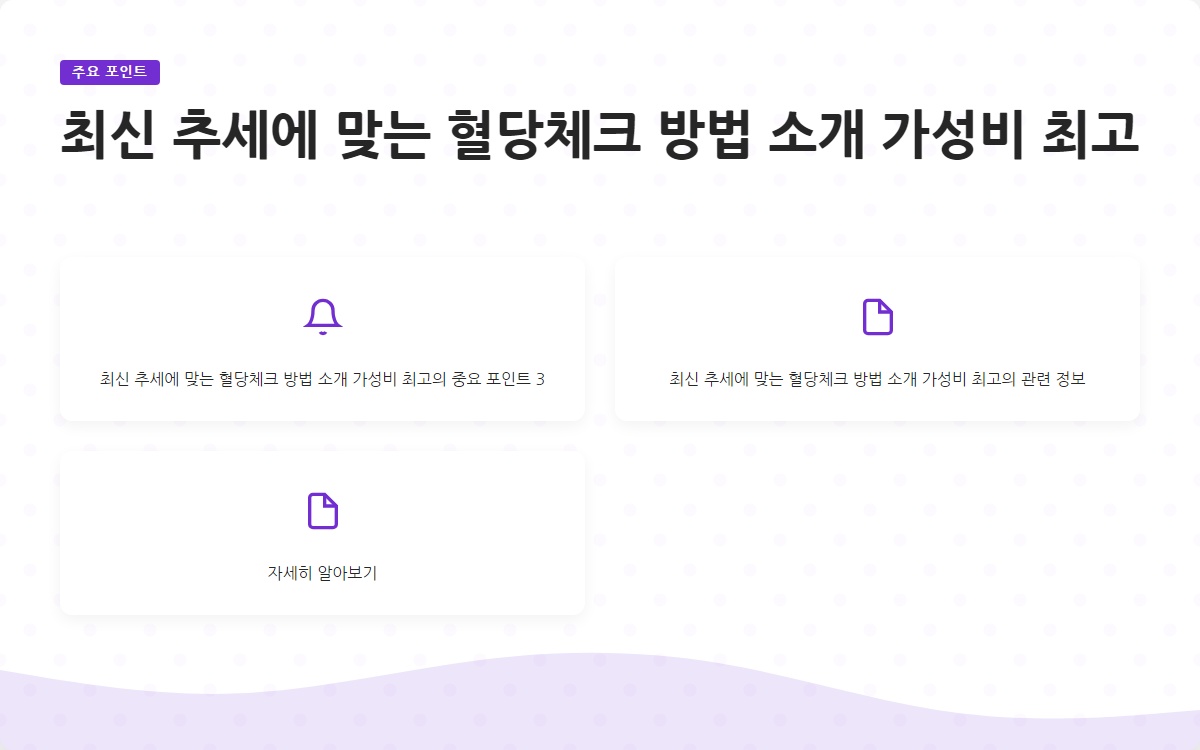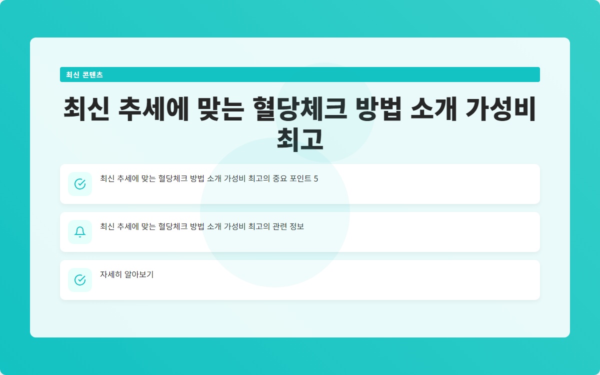 혈당 체크는 당뇨병 관리의 핵심입니다. 최신 혈당 체크 방법과 가성비 좋은 제품을 통해 보다 쉽게 혈당을 관리할 수 있습니다. 쉬운 혈당체크를 통해 건강한 삶을 영위하시기 바랍니다!