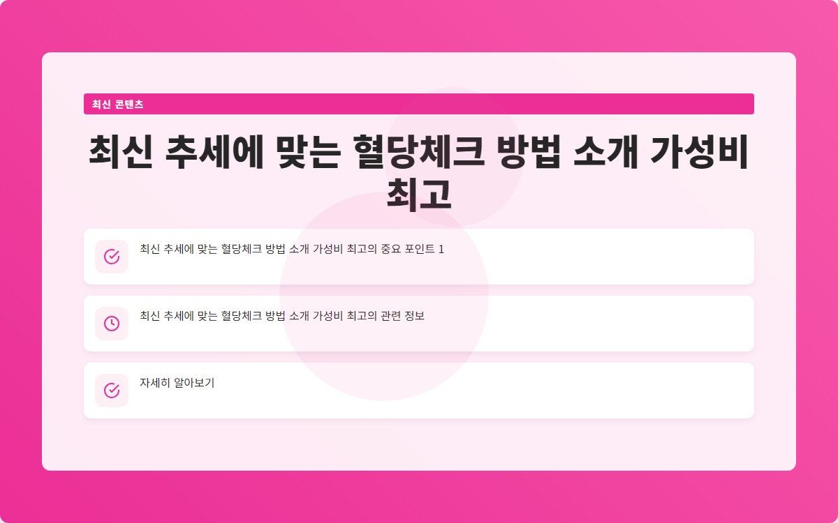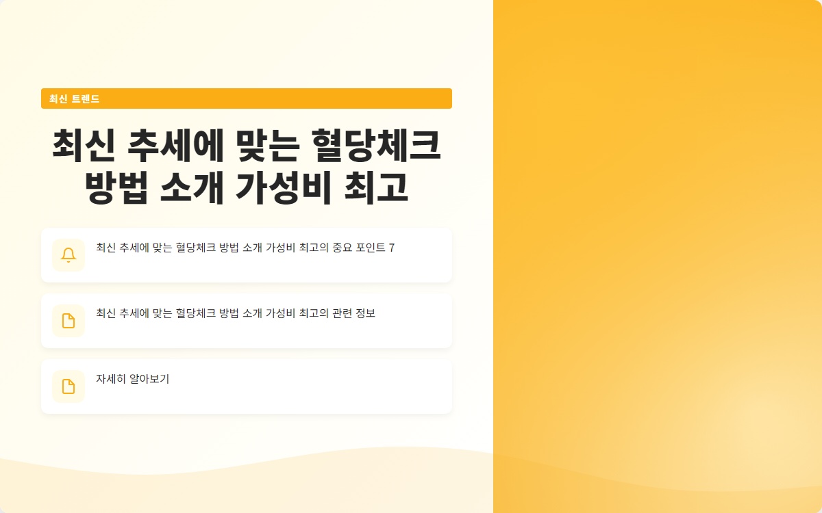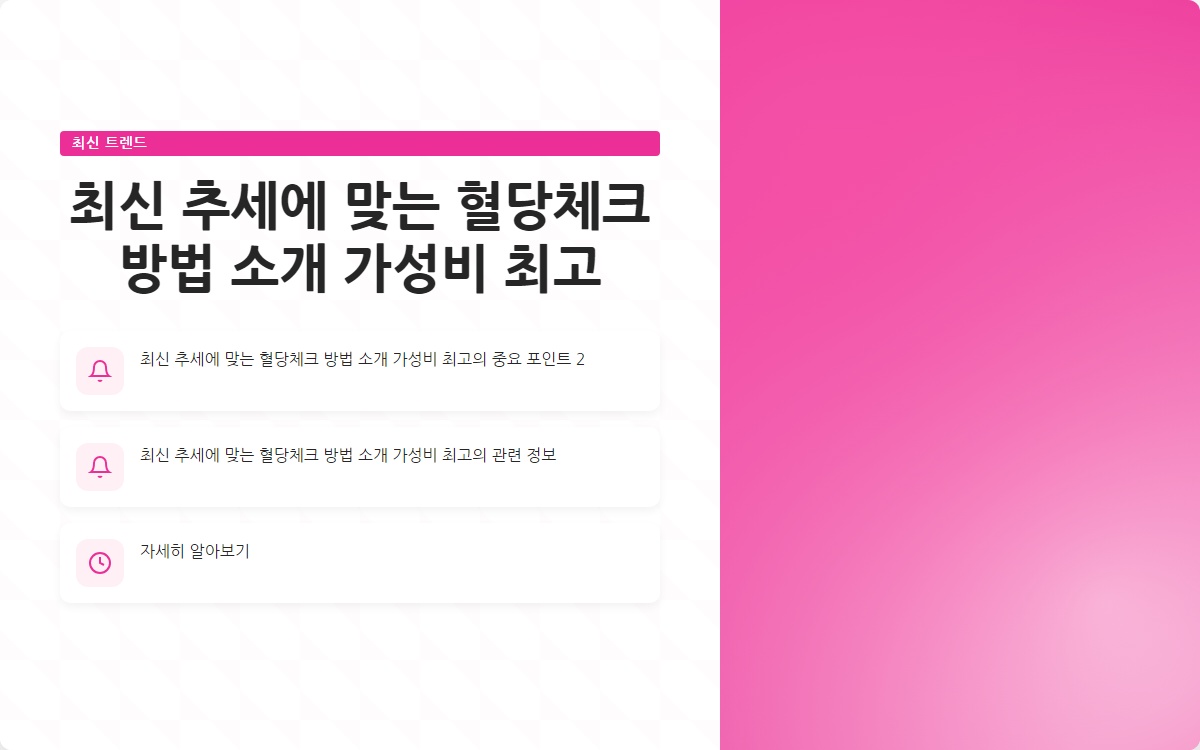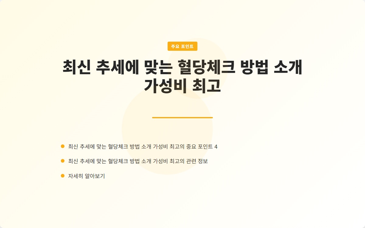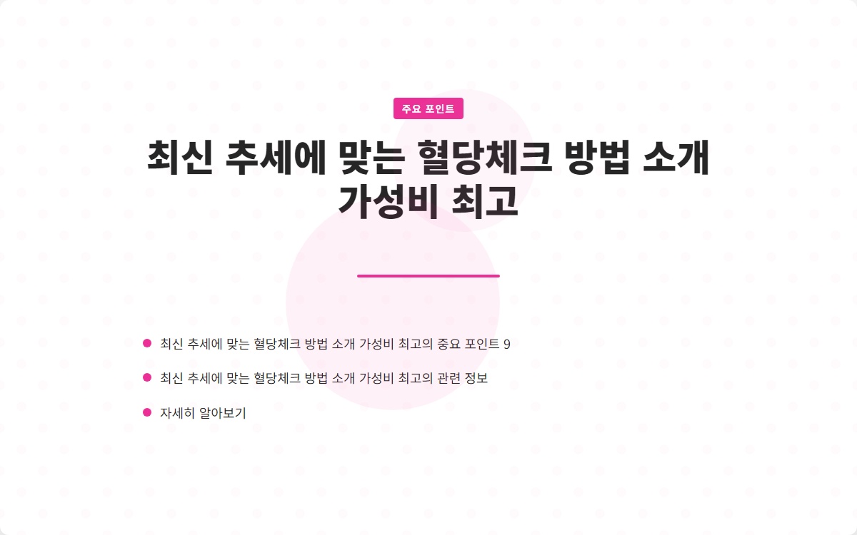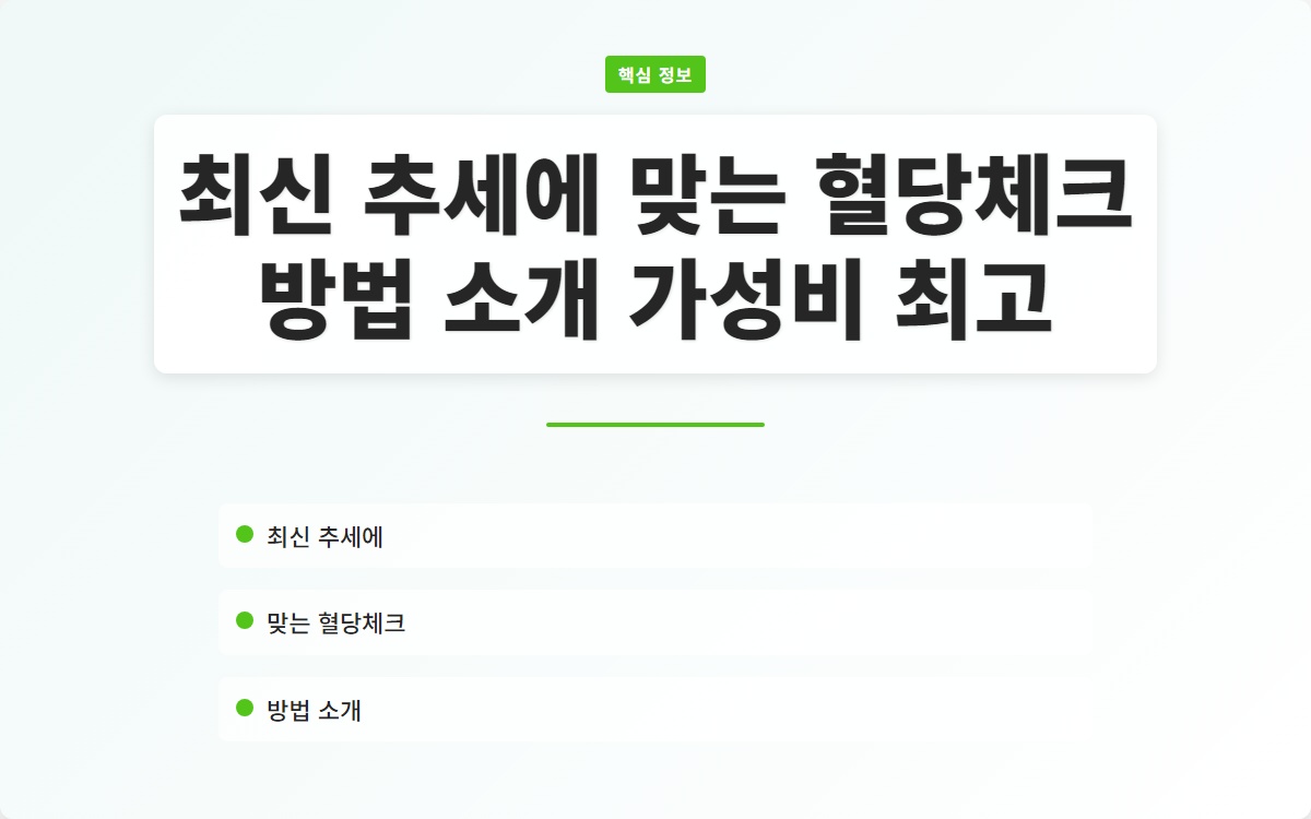 혈당 체크는 당뇨병 관리의 핵심입니다. 최신 혈당 체크 방법과 가성비 좋은 제품을 통해 보다 쉽게 혈당을 관리할 수 있습니다. 쉬운 혈당체크를 통해 건강한 삶을 영위하시기 바랍니다!