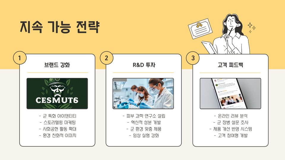 또한, 시장의 변화에 발맞춰 새로운 제품을 지속적으로 개발해야 합니다. 고객의 요구와 트렌드를 반영한 혁신적인 제품은 브랜드의 경쟁력을 높이는 데 큰 도움이 됩니다. 예를 들어, 유행하는 성분이나 기술을 활용한 제품을 출시하면 소비자들의 관심을 끌 수 있습니다.