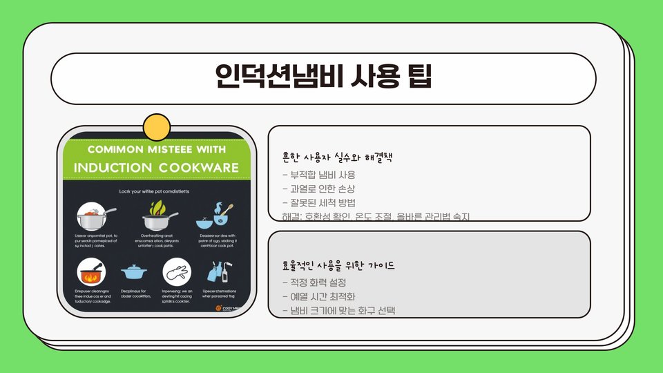 - 인덕션 조리기의 원리를 이해하고, 적절한 냄비를 선택하는 것이 중요합니다.