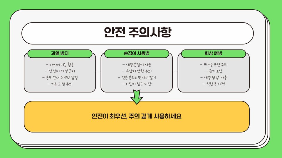 항상 안전하게 조리하고, 즐거운 요리 경험이 되길 바랍니다.
