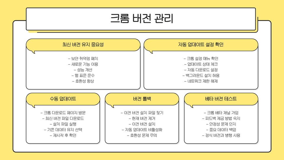 크롬 브라우저를 더욱 안전하고 효율적으로 사용하기 위해, 위의 팁들을 참고하시기 바랍니다. 문제를 경험했을 때는 당황하지 말고 차근차근 해결해 보세요.