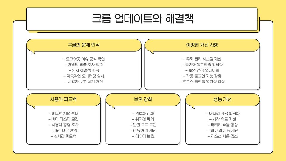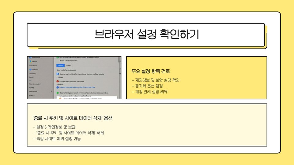 이 외에도, 브라우저 업데이트를 통해 최신 버전으로 유지하는 것도 중요합니다. 버그가 수정된 새로운 버전을 사용하면 문제 해결에 도움이 될 수 있습니다. 마지막으로, 보안 설정 점검을 통해 불필요한 보안 기능을 비활성화하는 것도 고려해볼 수 있습니다. 이러한 방법들은 모두 로그아웃 문제를 해결하는 데 효과적일 수 있습니다.