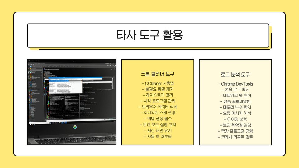 | 정기적인 쿠키 및 캐시 삭제 | 브라우저 성능 최적화 |
