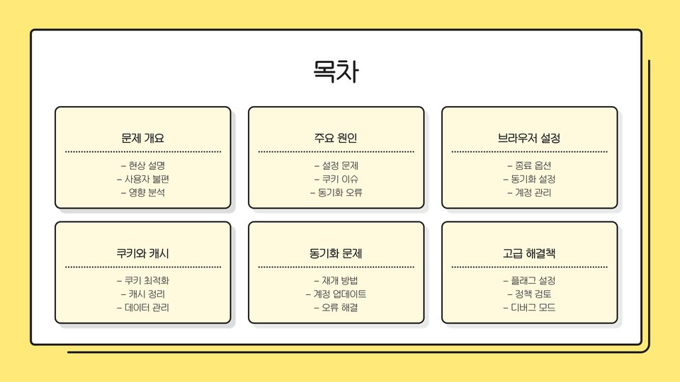 로그아웃 풀림 문제를 해결하기 위해 가장 먼저 할 수 있는 것은 쿠키와 캐시 삭제입니다. 크롬의 설정 메뉴에서 "개인정보 및 보안" 옵션을 선택한 후 "인터넷 사용 기록 삭제"를 클릭하면 됩니다. 이후 쿠키 및 기타 데이터와 캐시 이미지를 선택하고 삭제합니다. 이를 통해 브라우저가 새롭게 초기화되어 로그아웃 문제가 해결될 수 있습니다. 사용하는 동안 자주 이 작업을 수행해주면 좋습니다.