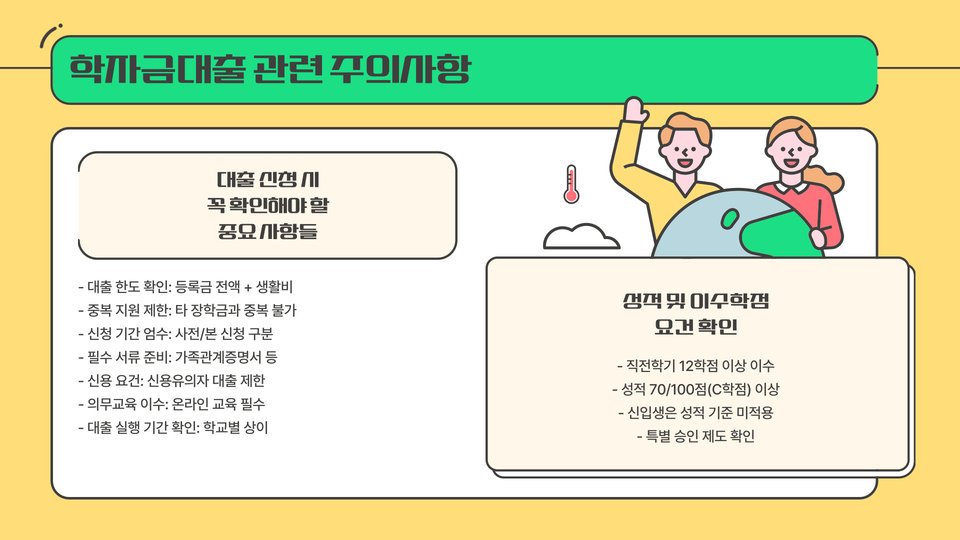 대출을 신청하려는 학생들은 먼저 자신의 필요와 상황을 고려해야 합니다. 예를 들어, 생활비가 부족하다면 대출 금액을 늘리거나 추가 비용을 고려해야 할 수 있습니다. 또한, 대출 신청 전에 필요한 서류를 준비하고, 대출 기관의 정책을 충분히 이해하는 것이 매우 중요합니다.