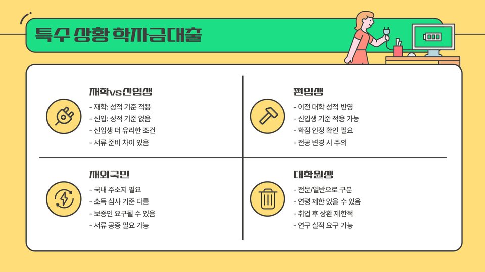 대출을 신청하려는 학생들은 먼저 자신의 필요와 상황을 고려해야 합니다. 예를 들어, 생활비가 부족하다면 대출 금액을 늘리거나 추가 비용을 고려해야 할 수 있습니다. 또한, 대출 신청 전에 필요한 서류를 준비하고, 대출 기관의 정책을 충분히 이해하는 것이 매우 중요합니다.