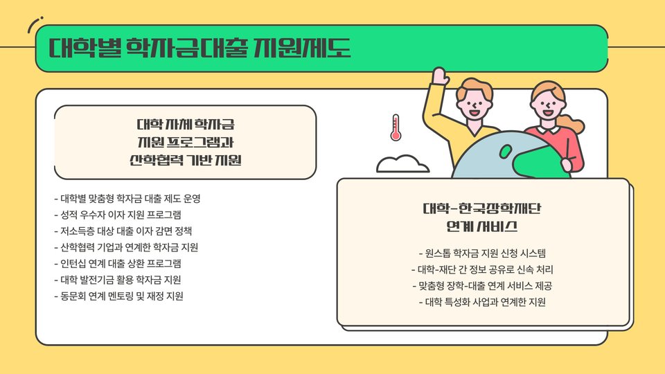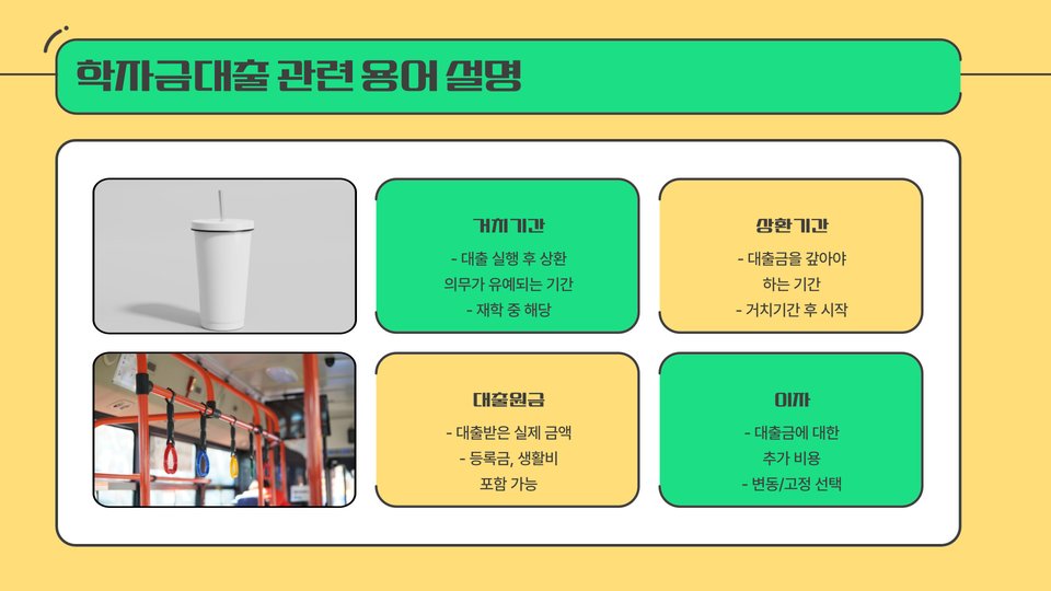 학자금대출은 학생들이 학업을 지속하기 위해 필요한 재정 지원을 제공하는 제도입니다. 이 대출은 주로 대학 등록금, 생활비 및 기타 학업 관련 비용을 충당하기 위해 사용됩니다. 대출을 통해 학생들은 학업을 마친 후 일정 기간 내에 원금과 이자를 상환해야 합니다. 학자금대출은 정부 또는 금융 기관에서 제공하며, 조건과 이자율은 각 기관에 따라 다릅니다.