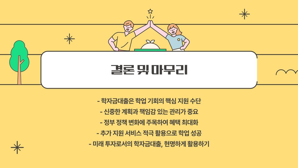 학자금 대출의 승인 과정과 기간을 이해하는 것은 매우 중요합니다. 대출금이 필요한 시점에 맞춰 빠르게 움직일 수 있기 때문입니다. 앞으로 학자금 대출을 계획하고 있는 학생들은 이 가이드를 참고하여 미리 준비하고, 필요한 정보를 숙지해 성공적인 대출 신청을 하시기 바랍니다.
