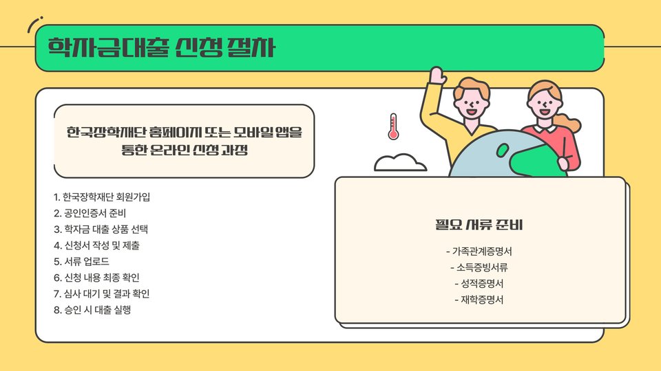 학자금대출을 신청하려는 많은 학생들에게 중요한 질문 중 하나는 학자금대출 승인기간입니다. 대출 신청 절차를 통해 자신의 재정 상황을 개선하고 학업을 계속할 수 있는 기회를 얻게 됩니다. 하지만 대출이 승인되기까지 어떤 과정이 필요한지, 그리고 그 기간이 얼마나 걸리는지에 대한 정확한 이해가 필요합니다. 이 글에서는 학자금대출의 신청 방법과 승인 과정, 예상되는 승인 기간에 대해 자세히 알아보겠습니다.