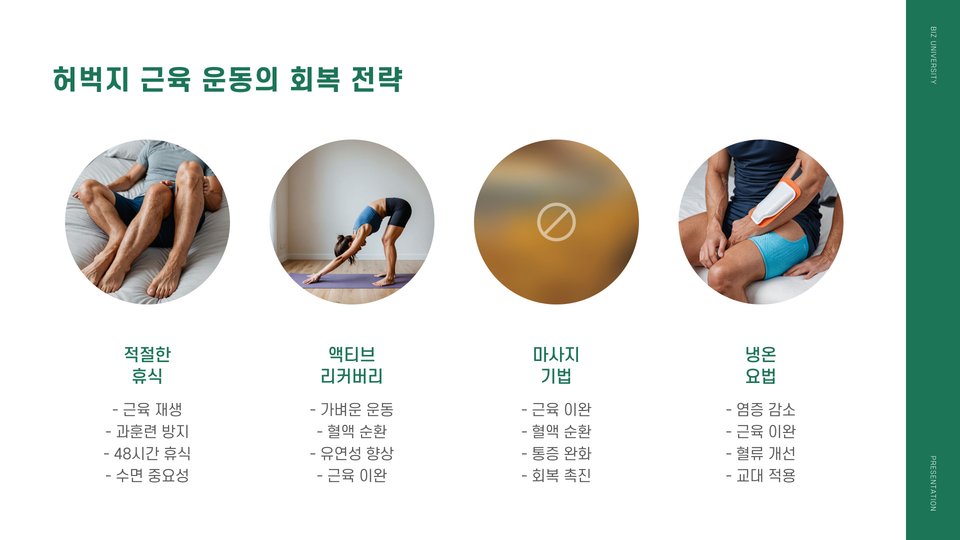 - 허벅지 근육은 일상적 활동에 필수적이며, 신체의 안정성을 높입니다.
