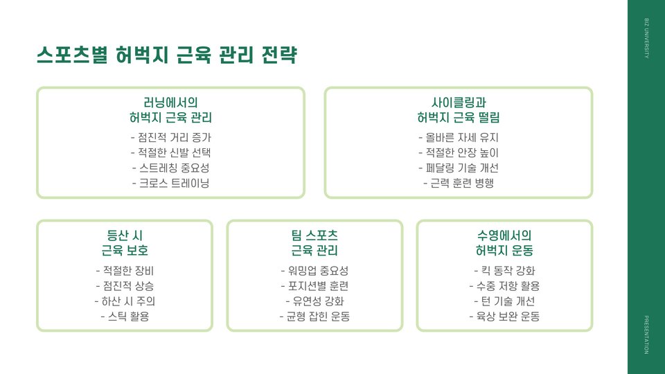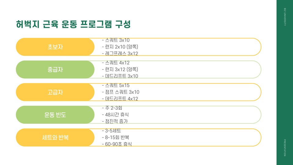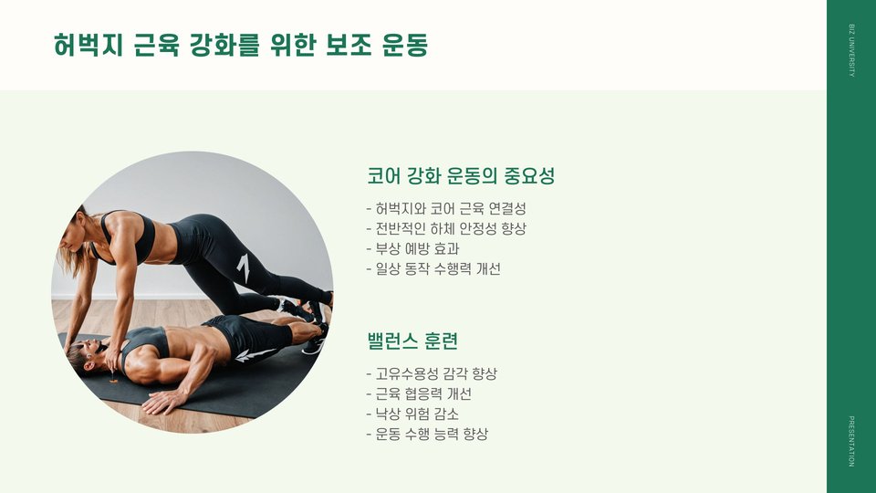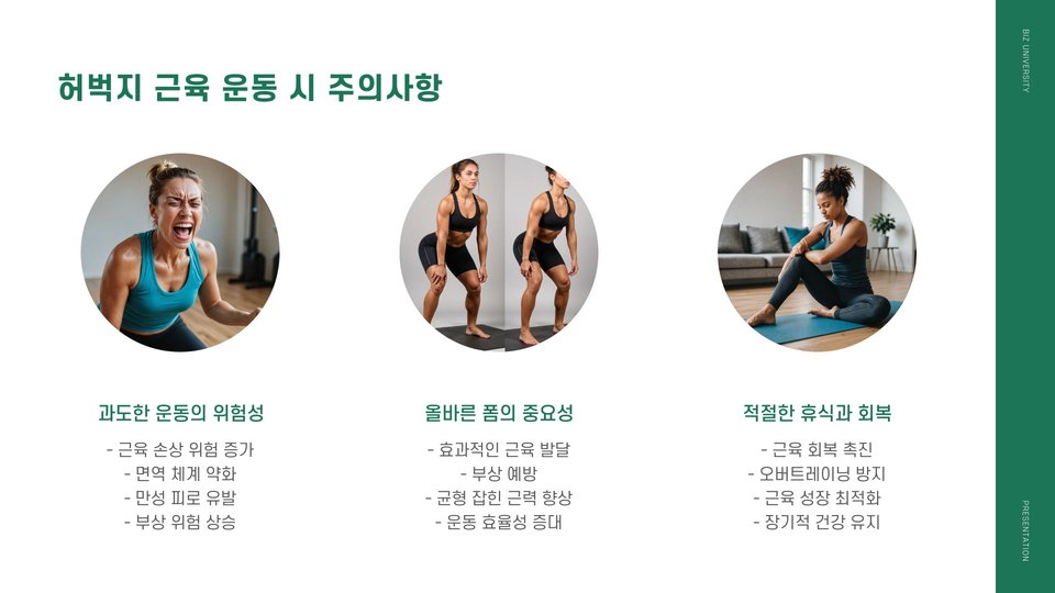- 허벅지 근육은 일상적 활동에 필수적이며, 신체의 안정성을 높입니다.