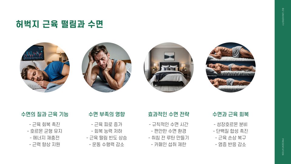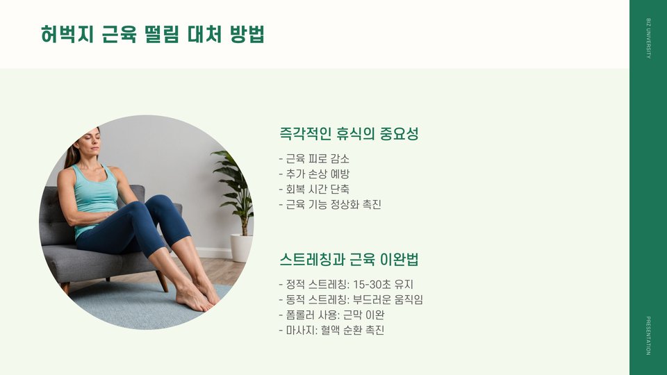 - 허벅지 떨림은 피로의 일반적인 증상으로, 적절한 관리 덕분에 회복이 가능하다.
