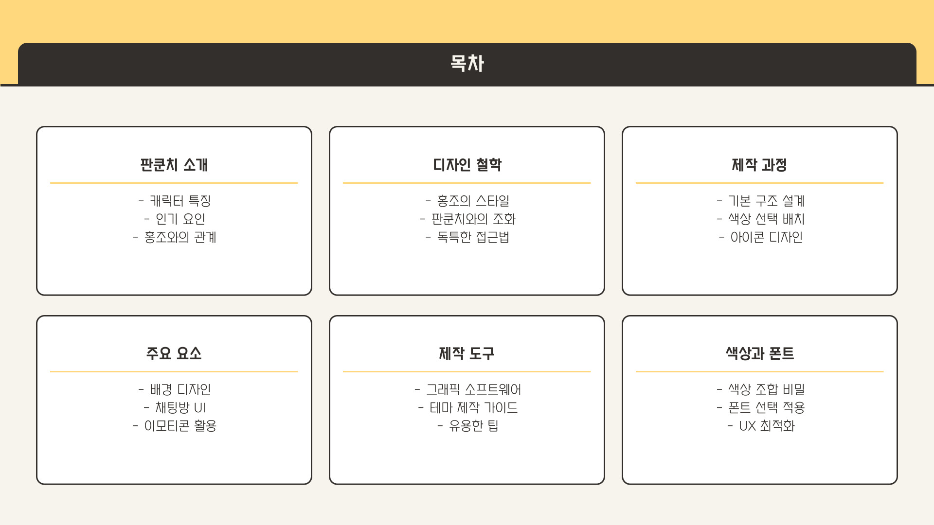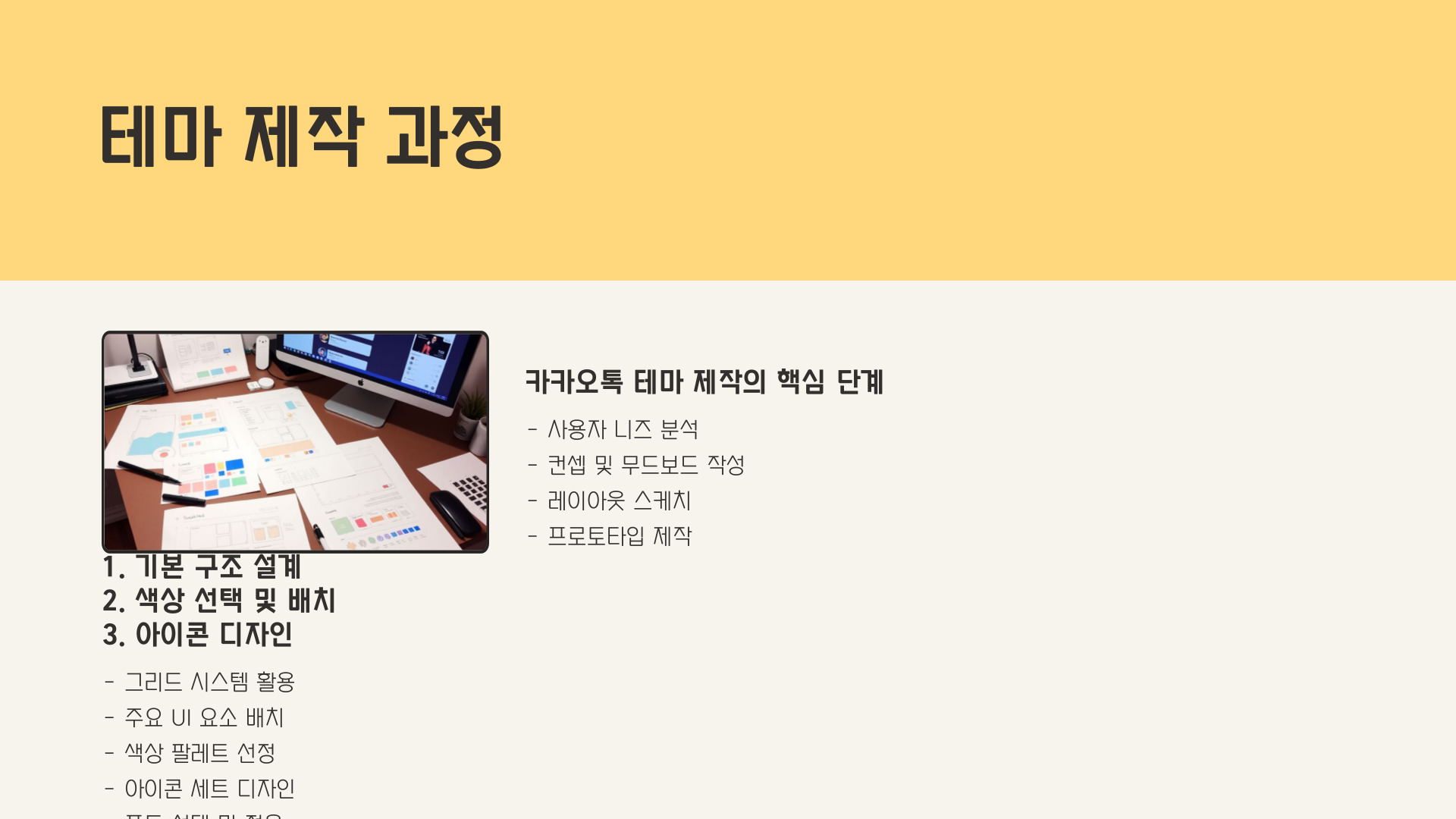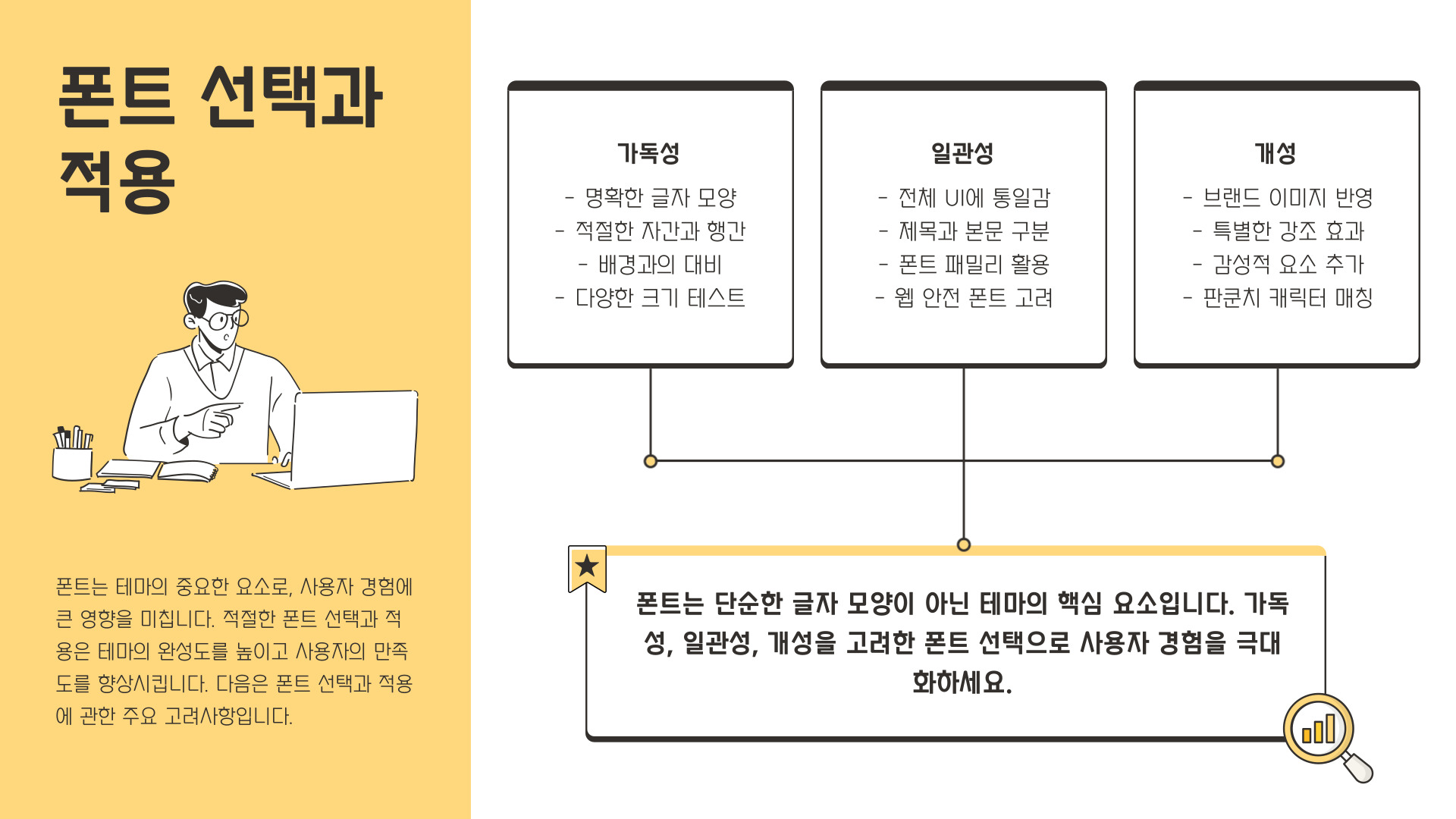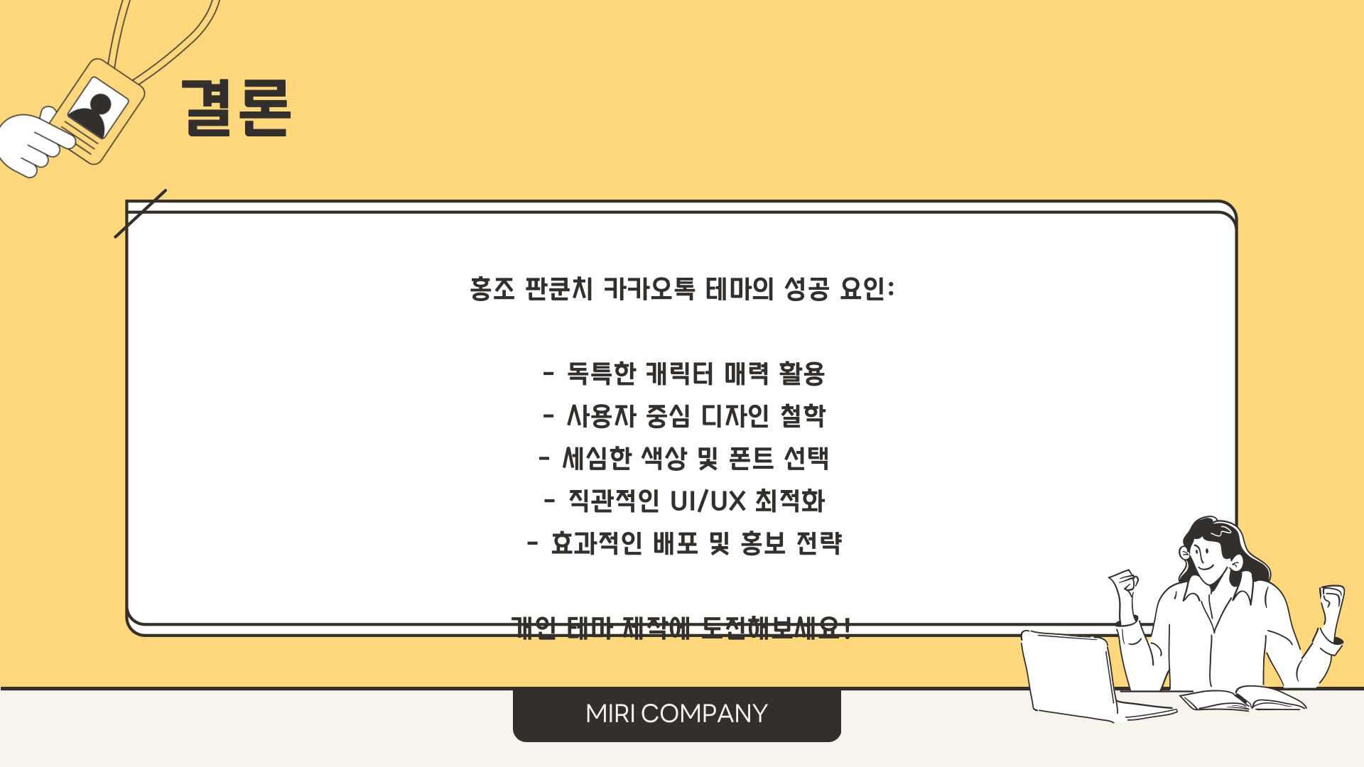 - 주기적으로 테마를 변경하여 새로운 느낌을 주는 것이 좋습니다.