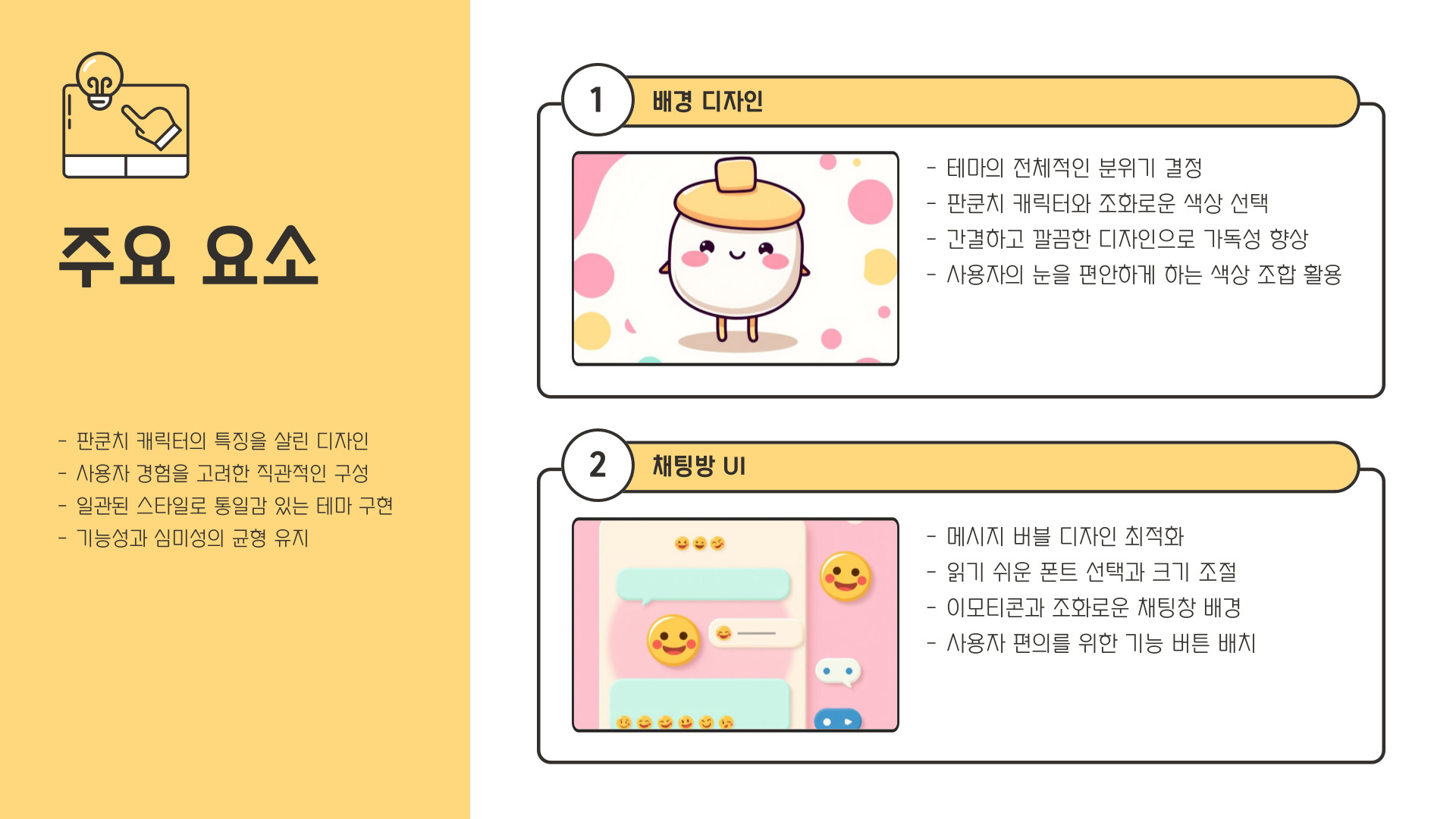 - 홍조 판쿤치 카톡테마는 화려한 색상과 귀여운 캐릭터로 인기를 모으고 있음.