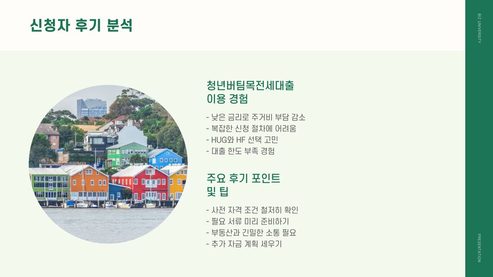 많은 청년들이 청년버팀목전세대출을 통해 안정적인 주거 환경을 마련할 수 있었습니다. 실제 후기에서는 “이 대출 덕분에 첫 집을 마련할 수 있었다”는 긍정적인 반응이 많습니다. 저금리로 인해 부담이 덜하고, 주거 안정성도 높일 수 있어 청년들에게 매우 유익한 프로그램이라는 점이 강조됩니다. 하지만, 대출을 받을 때는 반드시 자신의 상황을 고려하고, 무리한 대출은 피하는 것이 좋습니다.
