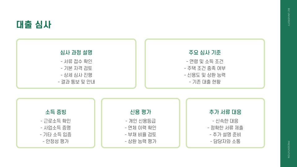 이후에는 상담 후 대출 신청을 진행하며, 이후 대출 심사가 진행됩니다. 심사 기간은 일반적으로 1주일 이내로 진행되며, 이는 기관마다 차이가 있을 수 있습니다. 심사 통과 후에는 대출 실행이 이루어지며, 이 때 대출 금액이 고객의 계좌로 송금됩니다.