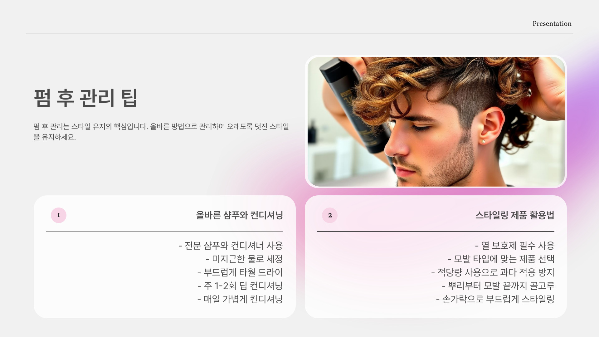 - 올바른 관리로 건강한 모발 유지