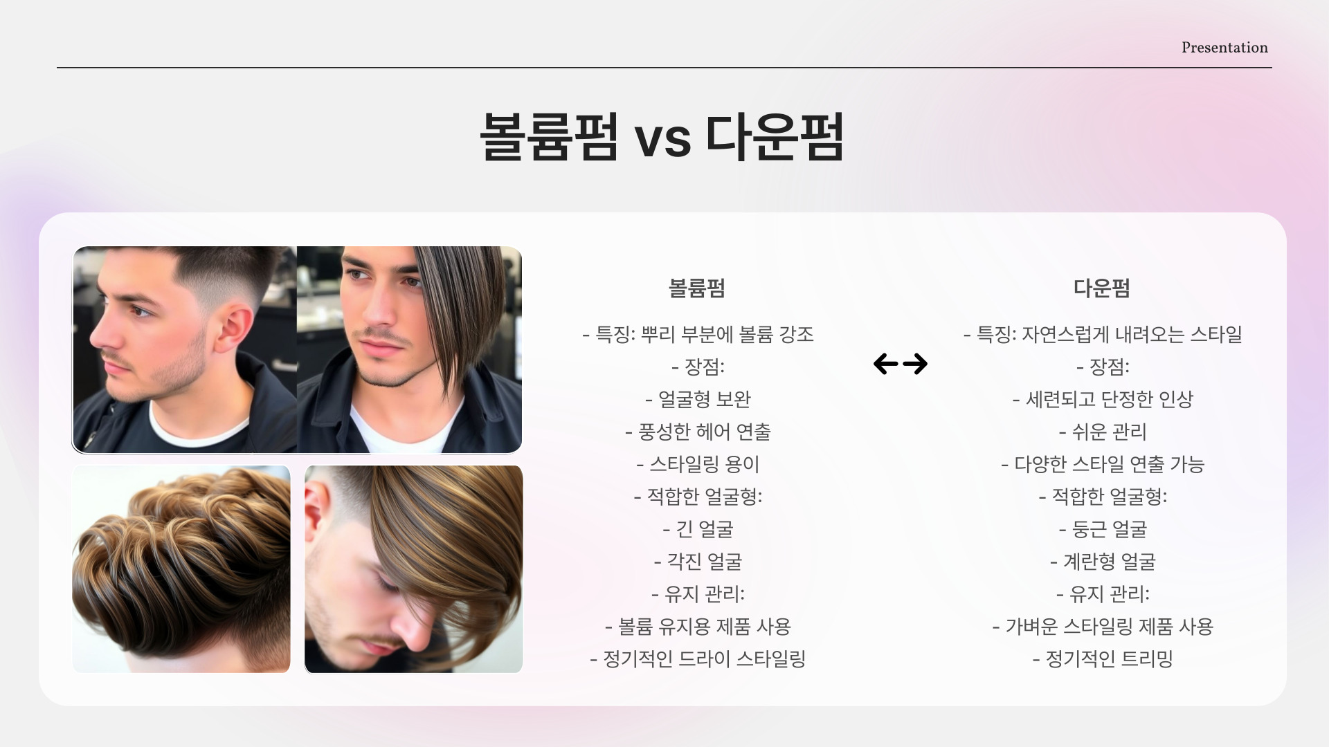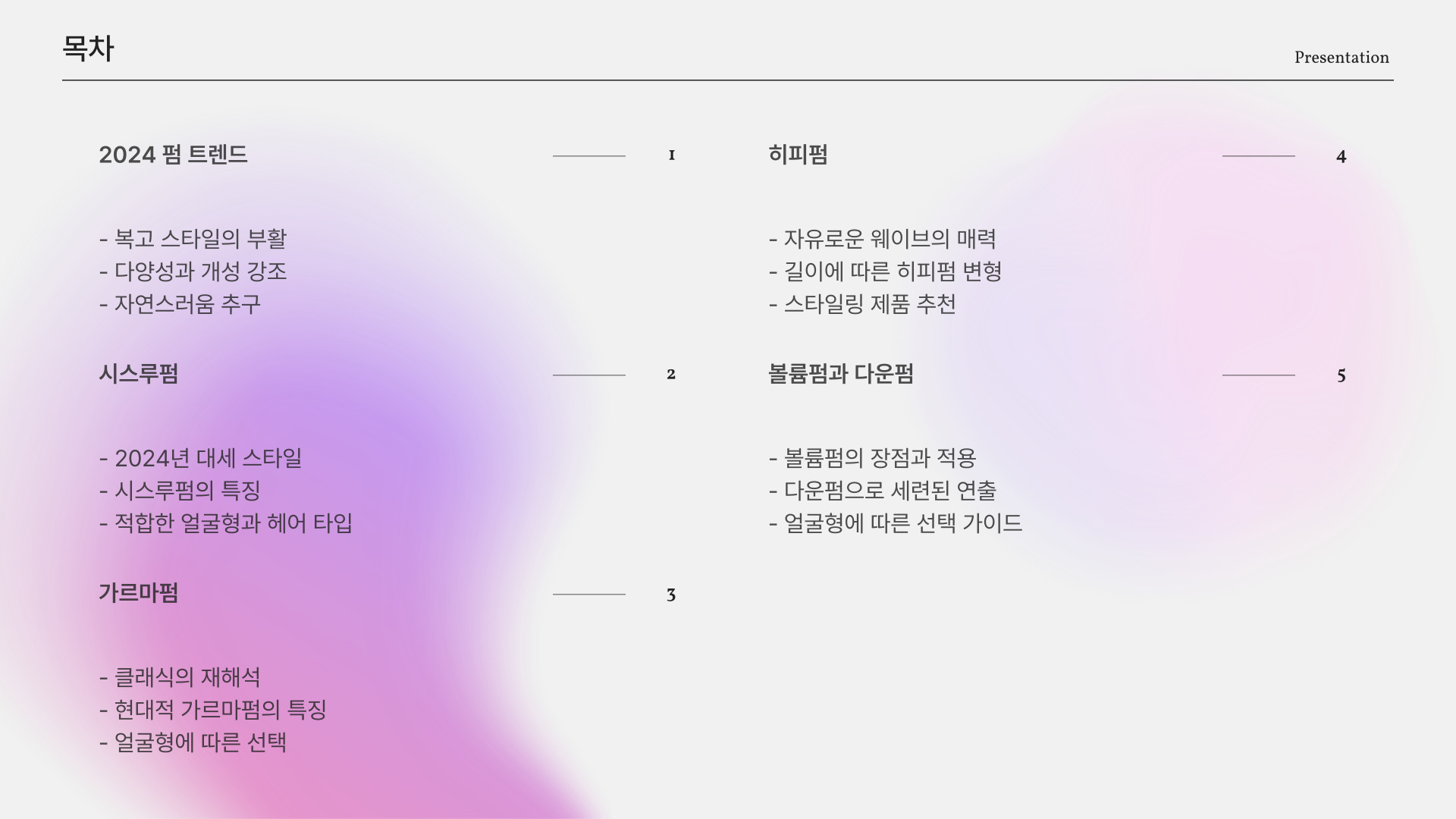 - 볼륨 펌: 자연스러운 볼륨감 제공