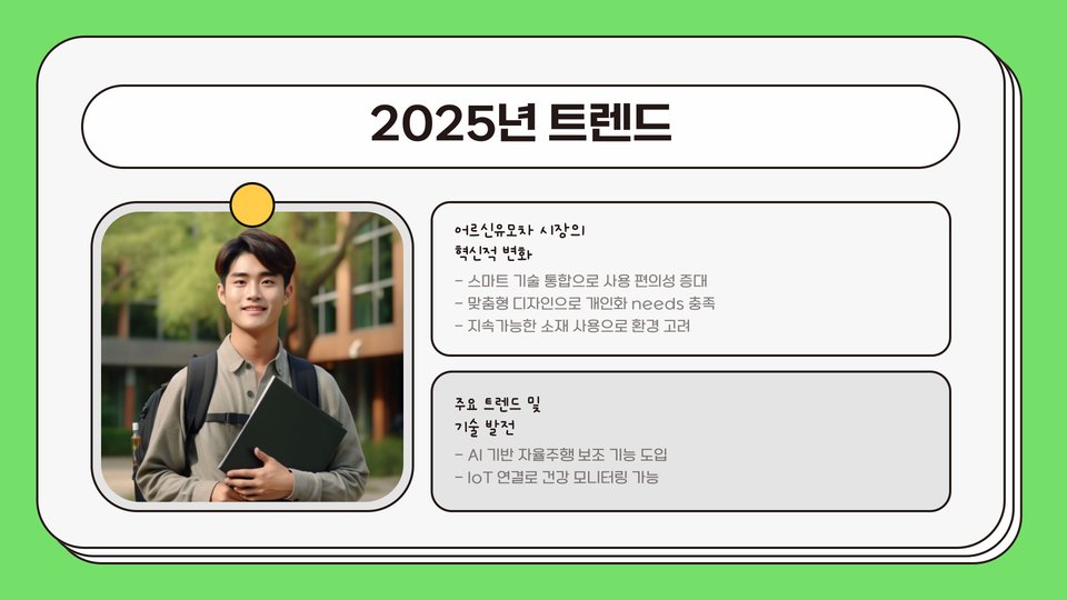 2025년을 맞이하여, 어르신유모차의 필요성은 점차 증가하고 있습니다. 특히 고령화 사회로 진입함에 따라 어르신들이 보다 안전하고 편리하게 외출할 수 있는 기구의 수요가 늘어나고 있습니다. 어르신유모차는 단순한 이동 수단을 넘어서, 어르신들의 생활의 질을 향상시키는 중요한 역할을 할 수 있습니다. 따라서 올바른 선택 방법을 알고 구매하는 것이 매우 중요합니다.