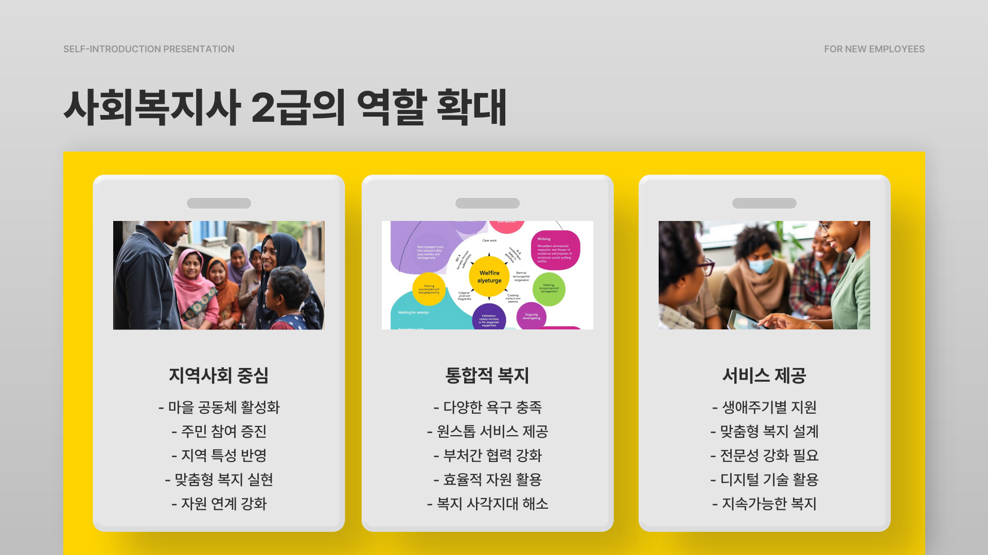 - 사회복지사들은 커뮤니티 개발 및 정책 제안에도 참여할 수 있다.