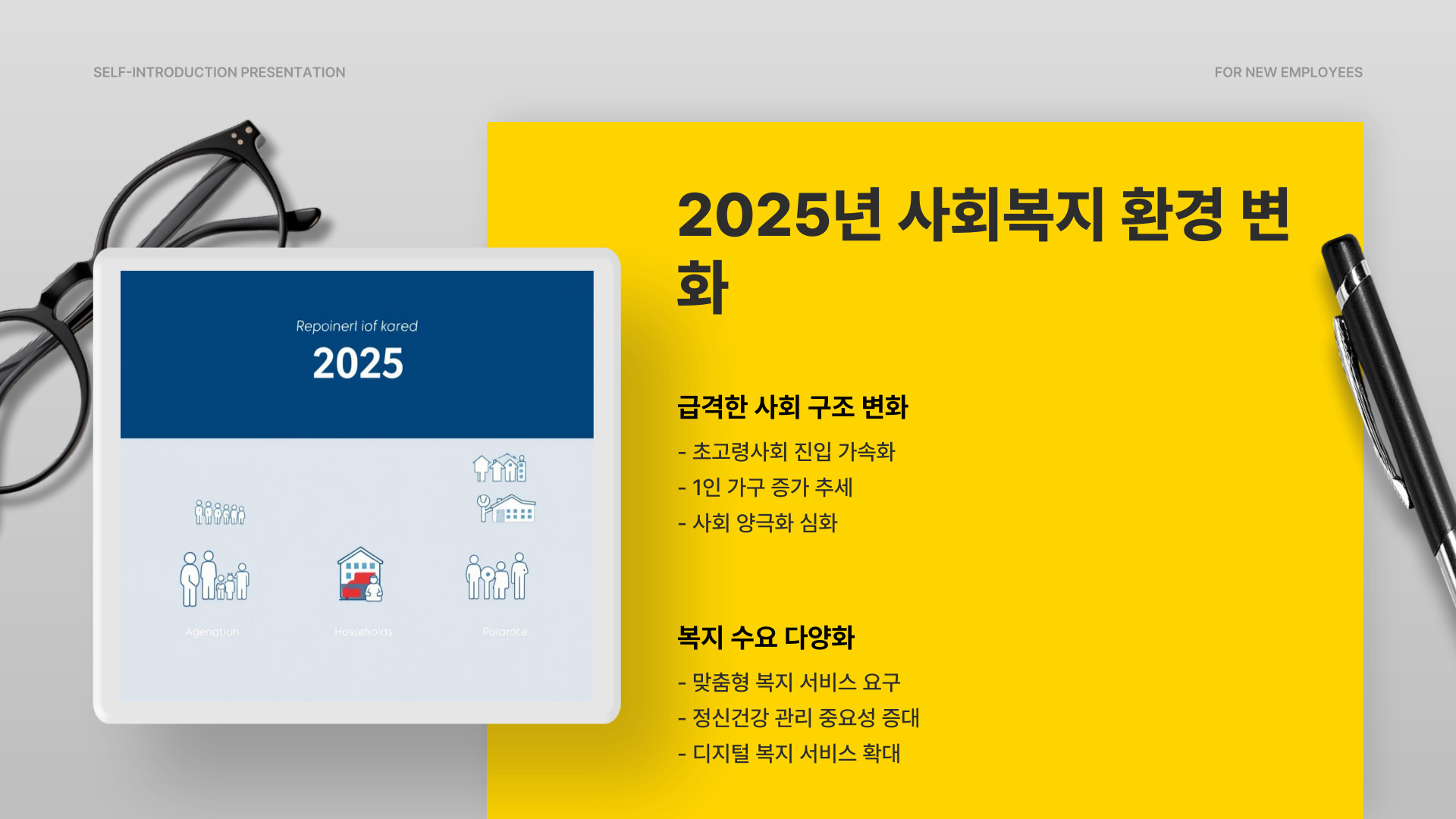 - 사회적 요구에 따라 복지 서비스 수요가 급증하고 있다.