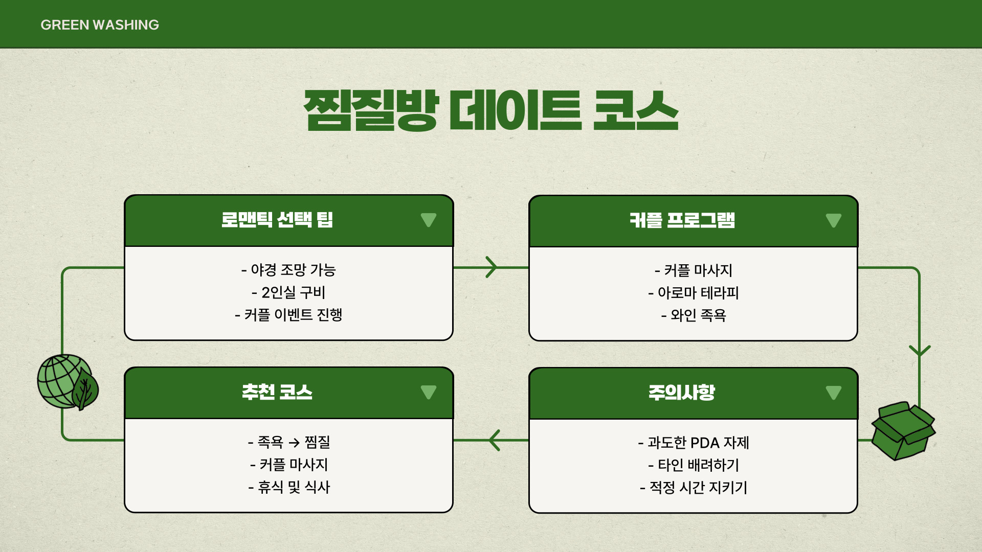 여기가 특별한 이유는 자연 치유 효과에 있습니다. 한방의학에 기반한 다양한 프로그램을 통해 몸의 균형을 찾을 수 있으며, 찜질 외에도 약초 찜질 등이 제공되어 건강 개선에도 효과적입니다. 방문 시에는 한방 차와 함께 편안한 시간을 즐길 수 있습니다.