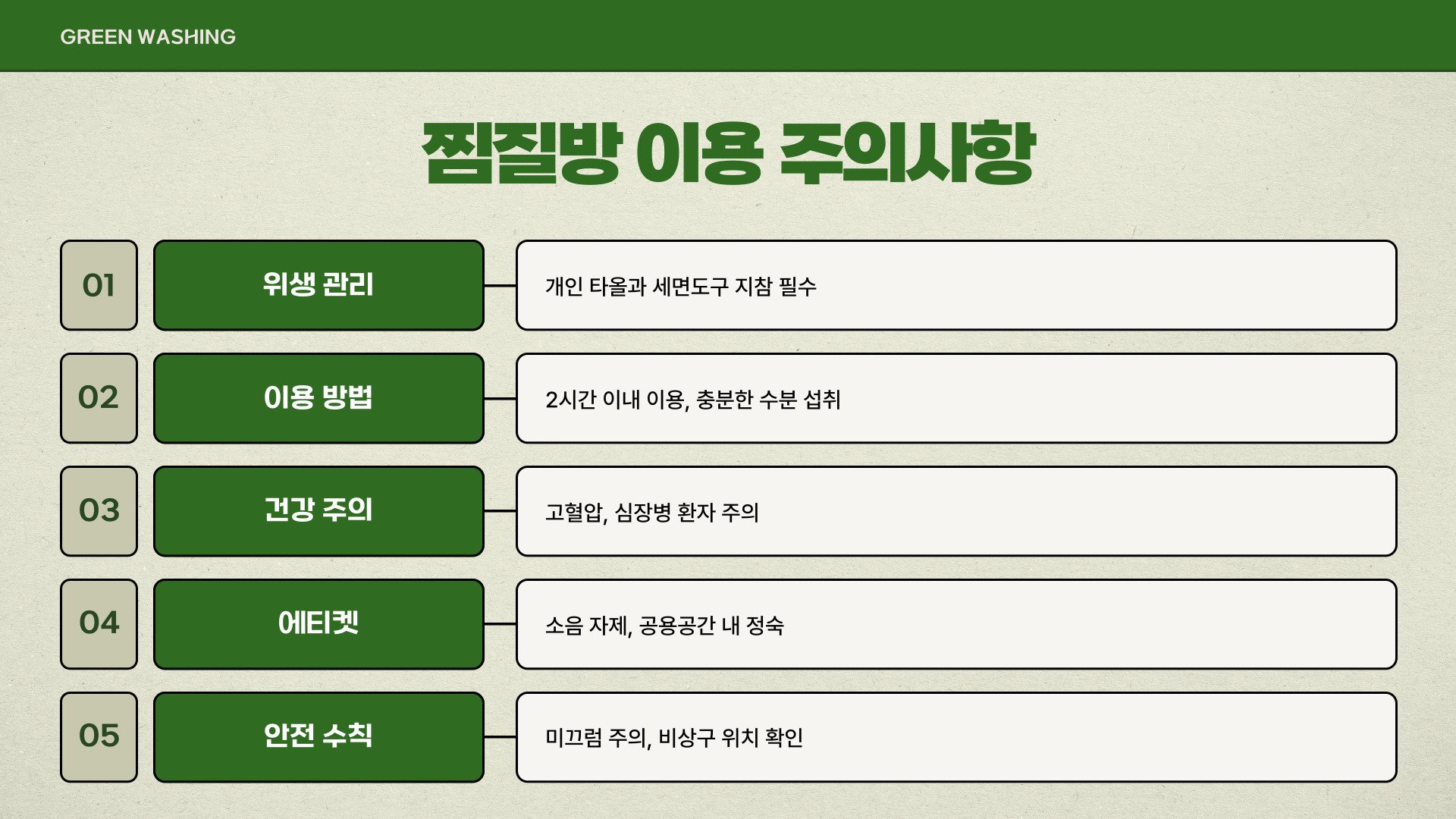 2025년 서울 찜질방 추천 TOP 5로 소개한 이들 각각의 장소는 독특한 매력과 함께 편안하고 힐링을 추구하는 공간입니다. 겨울철 서울을 방문할 때, 이곳들을 꼭 체크해보시기 바랍니다. 찜질방에서의 즐거운 시간을 활용하여 스트레스를 날려버리고, 몸과 마음 모두 건강을 회복하시길 바랍니다!