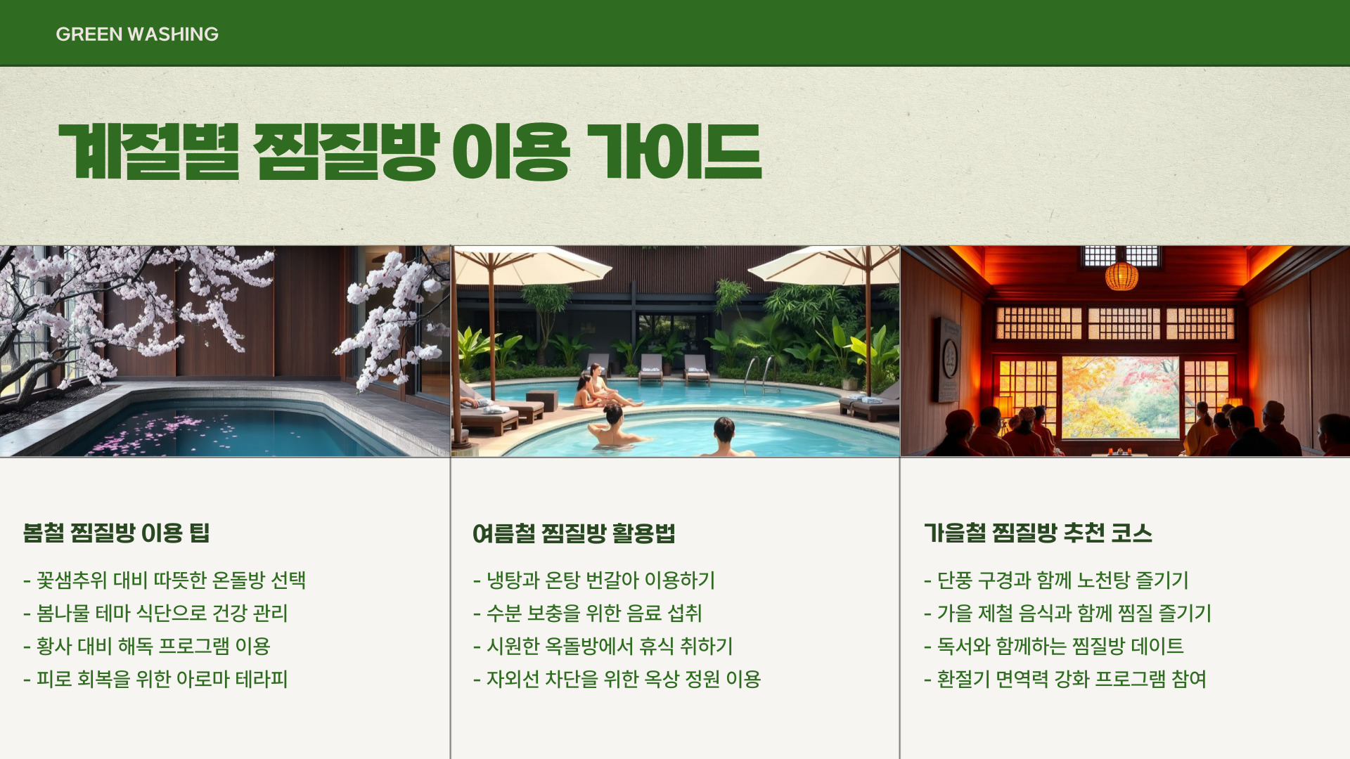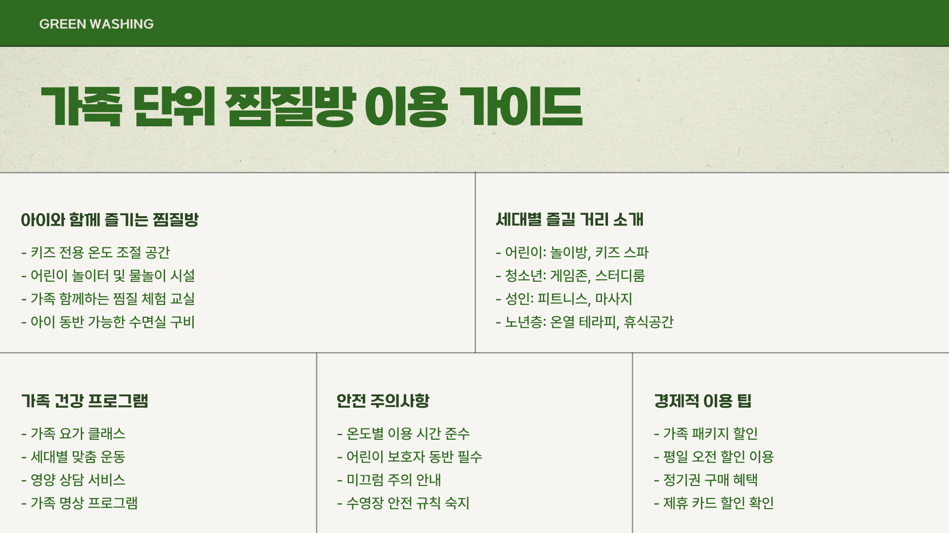 - 강변 스파랜드: 다양한 찜질 시설과 합리적인 가격